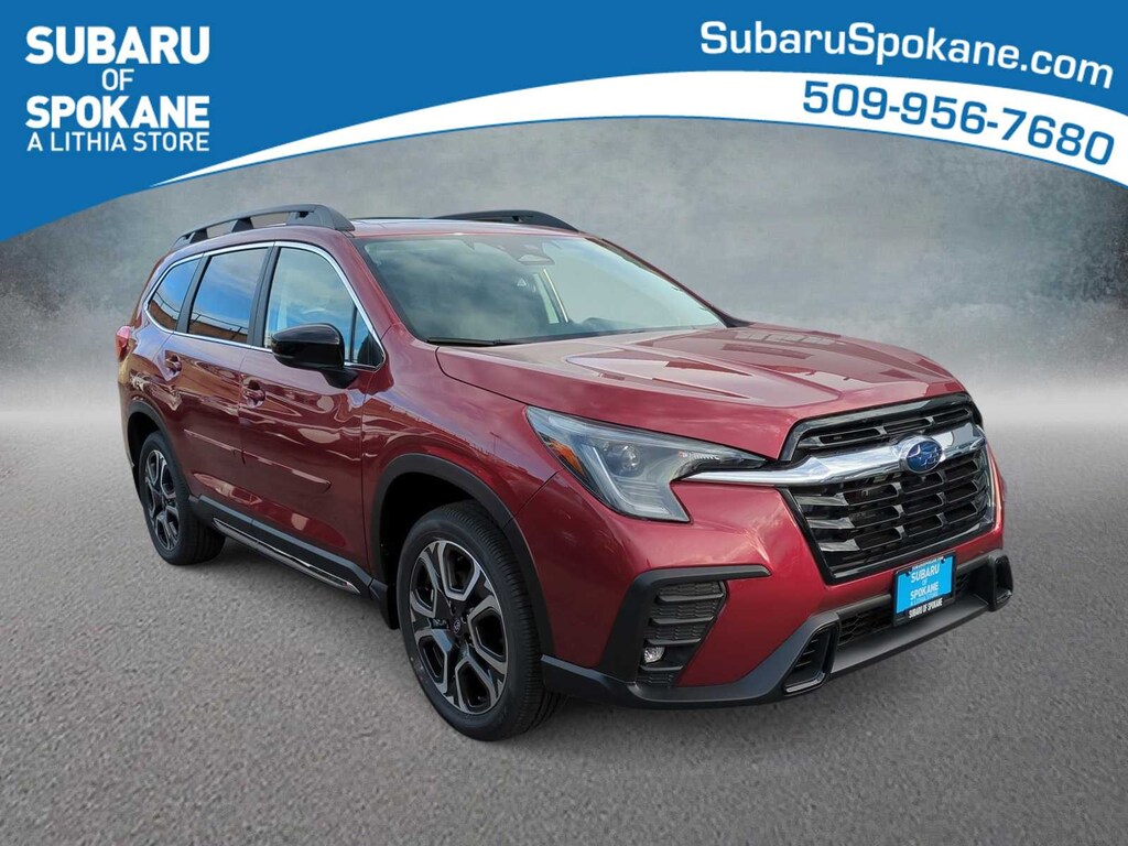 Crimson Red Pearl 2026 Subaru Ascent Limited AWD Lineartronic CVT 2.4L 4-Cylinder DOHC 16V 14 Speakers, 3rd row seats: bench, 4-Wheel Disc Brakes, ABS brakes, Air Conditioning, Alloy wheels, AM/FM radio: SiriusXM with 360L, Apple CarPlay & Android Auto, Auto High-beam Headlights, Auto-dimming Rear-View mirror, Automatic temperature control, Brake assist, Bumpers: body-color, Compass, Delay-off headlights, Driver door bin, Driver vanity mirror, Dual front impact airbags, Dual front side impact airbags, Electronic Stability Control, Emergency communication system: MySubaru Companion (5-years free), Exterior Parking Camera Rear, Four wheel independent suspension, Front anti-roll bar, Front Bucket Seats, Front Center Armrest, Front dual zone A/C, Front fog lights, Front reading lights, Fully automatic headlights, Garage door transmitter: HomeLink, harman/kardonî Speakers, Heated door mirrors, Heated Front Bucket Seats, Heated front seats, Heated rear seats, Heated steering wheel, Illuminated entry, Knee airbag, Leather Shift Knob, Leather steering wheel, Low tire pressure warning, Memory seat, Navigation system: MySubaru Navigator (1-year trial), Occupant sensing airbag, Outside temperature display, Overhead airbag, Overhead console, Panic alarm, Passenger door bin, Passenger vanity mirror, Perforated Leather-Trimmed Upholstery, Power door mirrors, Power driver seat, Power Liftgate, Power moonroof, Power passenger seat, Power steering, Power windows, Radio data system, Radio: Subaru 11.6 Multimedia System w/Navigation, Rear air conditioning, Rear anti-roll bar, Rear reading lights, Rear window defroster, Rear window wiper, Reclining 3rd row seat, Remote keyless entry, Security system, Speed control, Speed-sensing steering, Split folding rear seat, Spoiler, Steering wheel mounted audio controls, Tachometer, Telescoping steering wheel, Tilt steering wheel, Traction control, Trip computer, Turn signal indicator mirrors, Variably intermittent wipers, Wheels: 20 x 7.5 J Dk Gray Alloy w/Machine Finish.