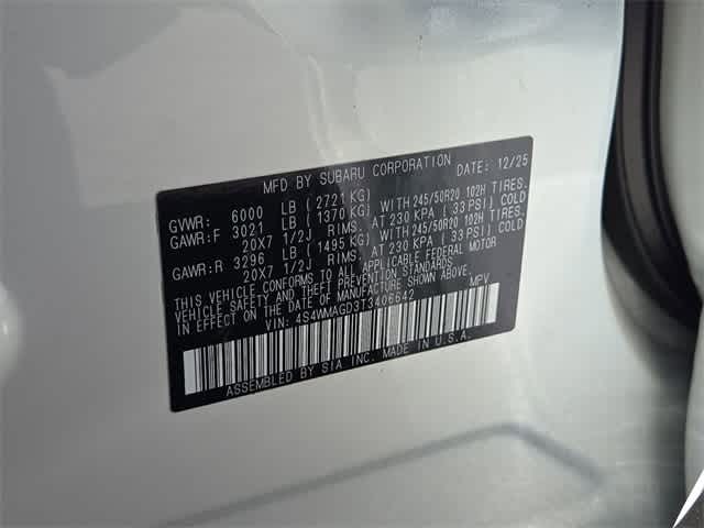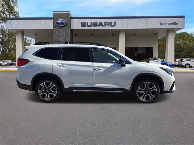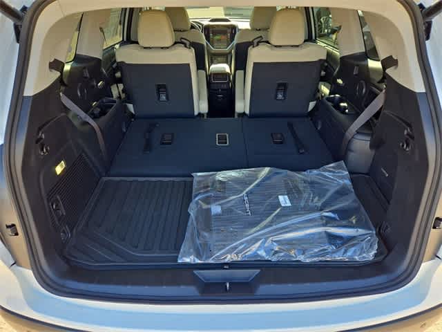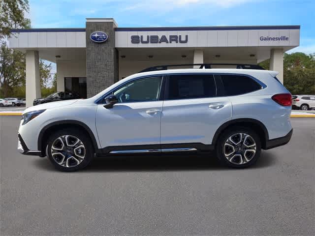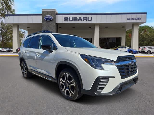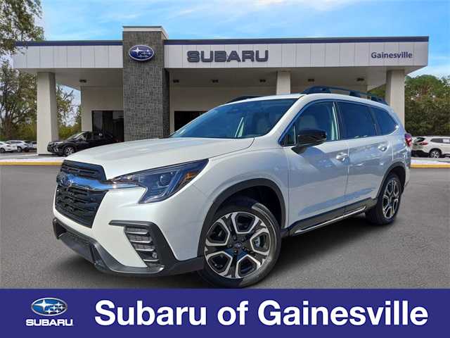 This 2026 Subaru Ascent Limited in Crystal White Pearl, features Popular Package #2 (All-Weather Floor Liners, Auto-Dimming Exterior Mirror with Approach Light, Cargo Tray, LED Cargo Area Lighting, and LED Upgrade), Standard Model, 14 Speakers, 3rd row seats: bench, 4-Wheel Disc Brakes, ABS brakes, Air Conditioning, Alloy wheels, AM/FM radio: SiriusXM with 360L, Apple CarPlay & Android Auto, Auto High-beam Headlights, Auto-dimming Rear-View mirror, Automatic temperature control, Brake assist, Bumpers: body-color, Compass, Delay-off headlights, Driver door bin, Driver vanity mirror, Dual front impact airbags, Dual front side impact airbags, Electronic Stability Control, Emergency communication system: MySubaru Companion (5-years free), Exterior Parking Camera Rear, Four wheel independent suspension, Front anti-roll bar, Front Bucket Seats, Front Center Armrest, Front dual zone A/C, Front fog lights, Front reading lights, Fully automatic headlights, Garage door transmitter: HomeLink, harman/kardonî Speakers, Heated door mirrors, Heated Front Bucket Seats, Heated front seats, Heated rear seats, Heated steering wheel, Illuminated entry, Knee airbag, Leather Shift Knob, Leather steering wheel, Low tire pressure warning, Memory seat, Navigation system: MySubaru Navigator (1-year trial), Occupant sensing airbag, Outside temperature display, Overhead airbag, Overhead console, Panic alarm, Passenger door bin, Passenger vanity mirror, Perforated Leather-Trimmed Upholstery, Power door mirrors, Power driver seat, Power Liftgate, Power moonroof, Power passenger seat, Power steering, Power windows, Radio data system, Radio: Subaru 11.6 Multimedia System with Navigation, Rear air conditioning, Rear anti-roll bar, Rear reading lights, Rear window defroster, Rear window wiper, Reclining 3rd row seat, Remote keyless entry, Security system, Speed control, Speed-sensing steering, Split folding rear seat, Spoiler, Steering wheel mounted audio controls, Tachometer, Telescoping steering wheel, Tilt steering wheel, Traction control, Trip computer, Turn signal indicator mirrors, Variably intermittent wipers, and Wheels: 20 x 7.5 J Dark Gray Alloy with Machine Finish: Limited AWD