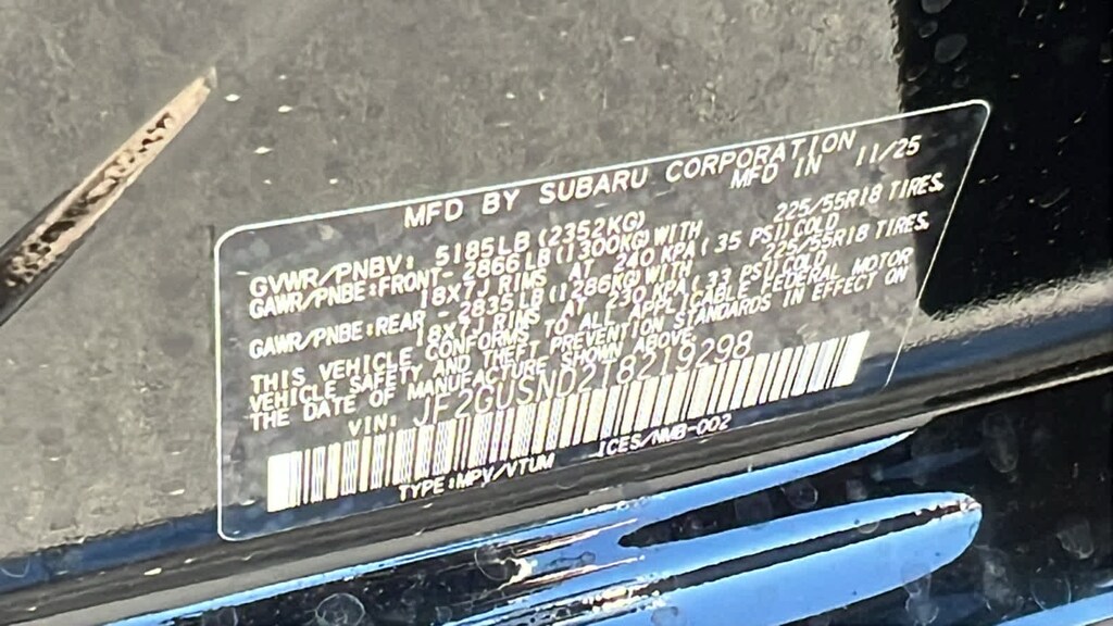 - Front tires: 225/55VR18.0