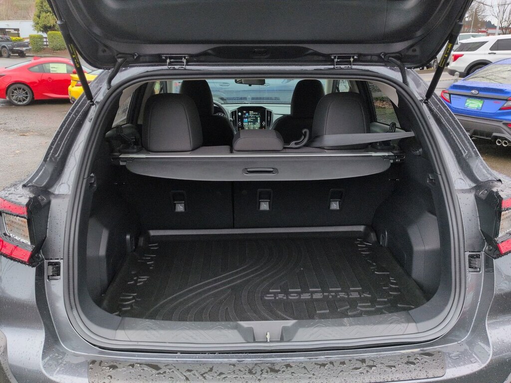 Magnetite Gray Metallic/Crystal Black Silica 2026 Subaru Crosstrek Premium AWD Lineartronic CVT 2.5L 4-Cylinder DOHC 16V 4-Wheel Disc Brakes, 6 Speakers, ABS brakes, Air Conditioning, All-Weather Floor Liners, Alloy wheels, AM/FM radio: SiriusXM, Anti-whiplash front head restraints, Auto High-beam Headlights, Automatic temperature control, Brake assist, Bumpers: body-color, Cargo Cover, Cloth Upholstery, Driver door bin, Driver vanity mirror, Dual front impact airbags, Dual front side impact airbags, Electronic Stability Control, Emergency communication system: MySubaru Companion (5-years free), Exterior Parking Camera Rear, Four wheel independent suspension, Front anti-roll bar, Front Bucket Seats, Front Center Armrest, Front dual zone A/C, Front fog lights, Front reading lights, Fully automatic headlights, Illuminated entry, Knee airbag, Low tire pressure warning, Occupant sensing airbag, Outside temperature display, Overhead airbag, Overhead console, Panic alarm, Passenger door bin, Passenger vanity mirror, Power door mirrors, Power steering, Power windows, Radio data system, Radio: Subaru 11.6 Multimedia Plus System, Rear anti-roll bar, Rear Bumper Cover, Rear seat center armrest, Rear side impact airbag, Rear window defroster, Rear window wiper, Remote keyless entry, Security system, Speed control, Speed-sensing steering, Split folding rear seat, Spoiler, Standard Model, Steering wheel mounted audio controls, Tachometer, Telescoping steering wheel, Tilt steering wheel, Traction control, Trip computer, Turn signal indicator mirrors, Variably intermittent wipers, Wheels: 17 x 7.0 J Machine Finish Aluminum-Alloy.