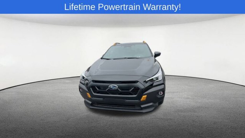 Crosstrek Wilderness is nicely equipped with 4-Wheel Disc Brakes, 6 Speakers, ABS brakes, Air Conditioning, Alloy wheels, AM/FM radio: SiriusXM, Anti-whiplash front head restraints, Auto High-beam Headlights, Automatic temperature control, Brake assist, Bumpers: body-color, Driver door bin, Driver vanity mirror, Dual front impact airbags, Dual front side impact airbags, Electronic Stability Control, Emergency communication system: MySubaru Companion (5-years free), Exterior Parking Camera Rear, Four wheel independent suspension, Front anti-roll bar, Front Bucket Seats, Front Center Armrest, Front dual zone A/C, Front fog lights, Front reading lights, Fully automatic headlights, Heated door mirrors, Heated Front Bucket Seats, Heated front seats, Heated steering wheel, Illuminated entry, Knee airbag, Leather Shift Knob, Leather steering wheel, Low tire pressure warning, Occupant sensing airbag, Outside temperature display, Overhead airbag, Overhead console, Panic alarm, Passenger door bin, Passenger vanity mirror, Power door mirrors, Power steering, Power windows, Radio data system, Radio: Subaru 11.6" Multimedia Plus System, Rear anti-roll bar, Rear seat center armrest, Rear side impact airbag, Rear window defroster, Rear window wiper, Remote keyless entry, Security system, Speed control, Speed-sensing steering, Split folding rear seat, Spoiler, Steering wheel mounted audio controls, Tachometer, Telescoping steering wheel, Tilt steering wheel, Traction control, Trip computer, Turn signal indicator mirrors, Variably intermittent wipers, Wheels: 17" x 7.0" J Matte Black Aluminum-Alloy, and Wilderness StarTex Upholstery.