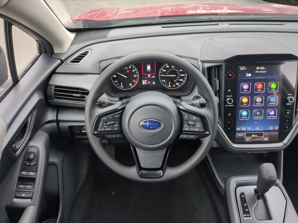 Lithium Red Pearl 2026 Subaru Crosstrek Premium AWD Lineartronic CVT 2.5L 4-Cylinder DOHC 16V 4-Wheel Disc Brakes, 6 Speakers, ABS brakes, Air Conditioning, Alloy wheels, AM/FM radio: SiriusXM, Anti-whiplash front head restraints, Auto High-beam Headlights, Automatic temperature control, Brake assist, Bumpers: body-color, Cloth Upholstery, Driver door bin, Driver vanity mirror, Dual front impact airbags, Dual front side impact airbags, Electronic Stability Control, Emergency communication system: MySubaru Companion (5-years free), Exterior Parking Camera Rear, Four wheel independent suspension, Front anti-roll bar, Front Bucket Seats, Front Center Armrest, Front dual zone A/C, Front fog lights, Front reading lights, Fully automatic headlights, Illuminated entry, Knee airbag, Low tire pressure warning, Occupant sensing airbag, Outside temperature display, Overhead airbag, Overhead console, Panic alarm, Passenger door bin, Passenger vanity mirror, Power door mirrors, Power steering, Power windows, Radio data system, Radio: Subaru 11.6 Multimedia Plus System, Rear anti-roll bar, Rear seat center armrest, Rear side impact airbag, Rear window defroster, Rear window wiper, Remote keyless entry, Security system, Speed control, Speed-sensing steering, Split folding rear seat, Spoiler, Steering wheel mounted audio controls, Tachometer, Telescoping steering wheel, Tilt steering wheel, Traction control, Trip computer, Turn signal indicator mirrors, Variably intermittent wipers, Wheels: 17 x 7.0 J Machine Finish Aluminum-Alloy.