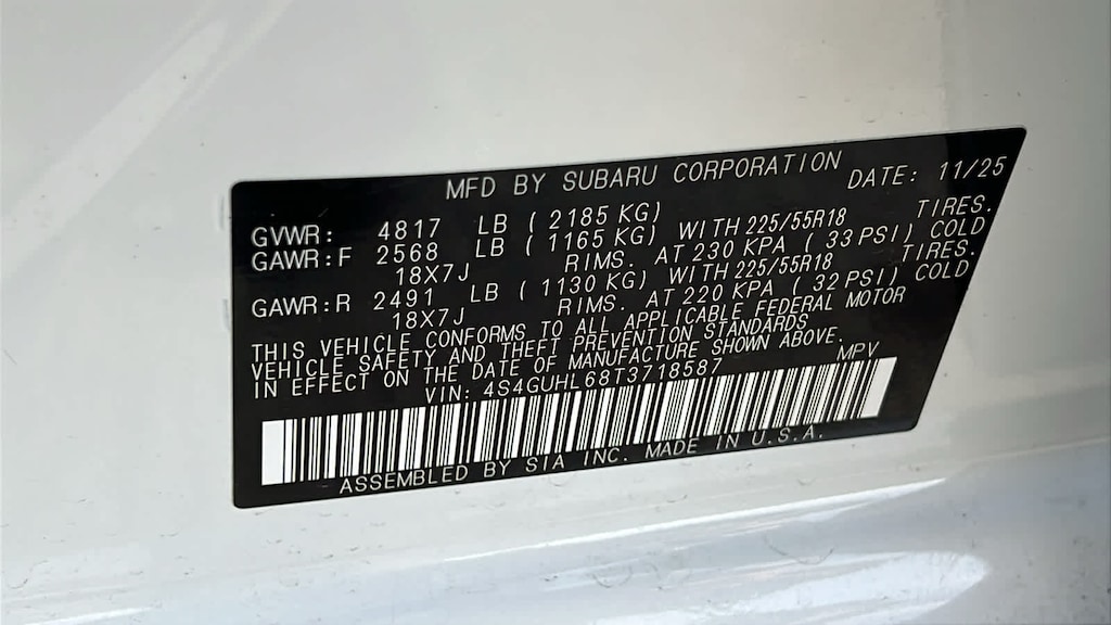 - Front tires: 225/55VR18.0