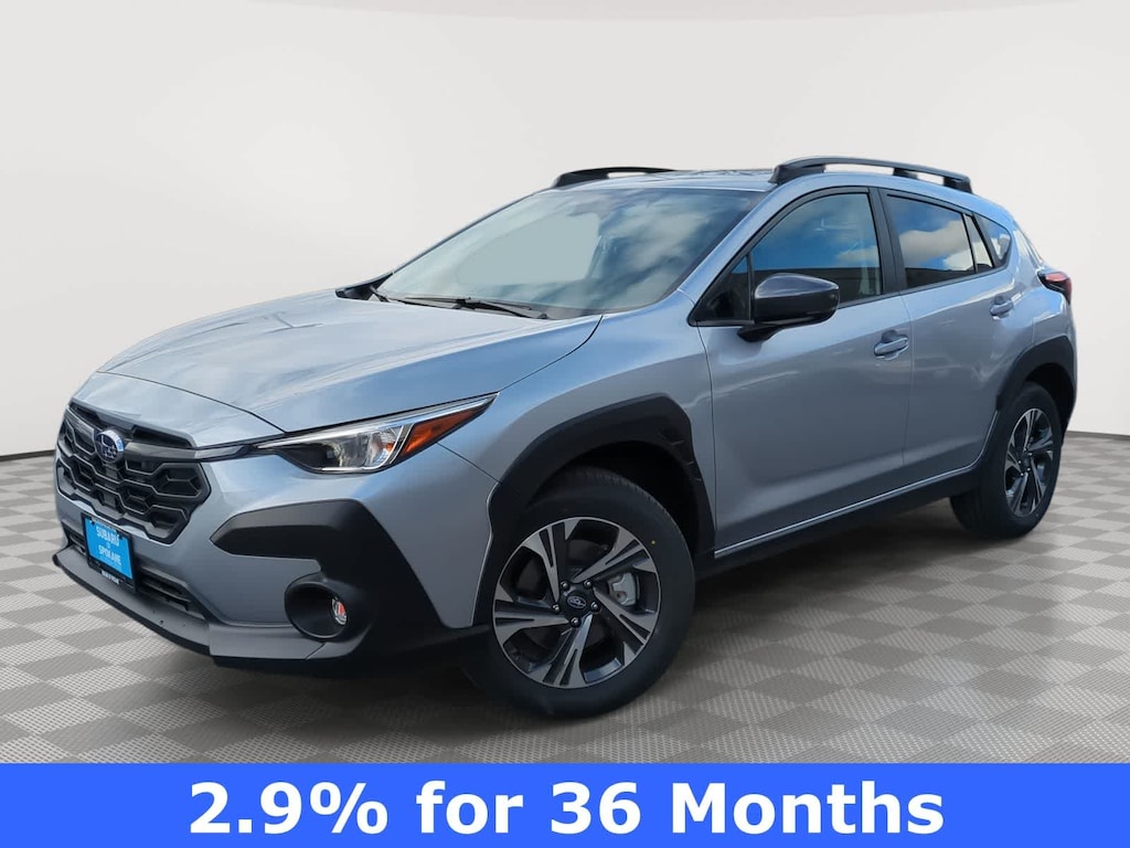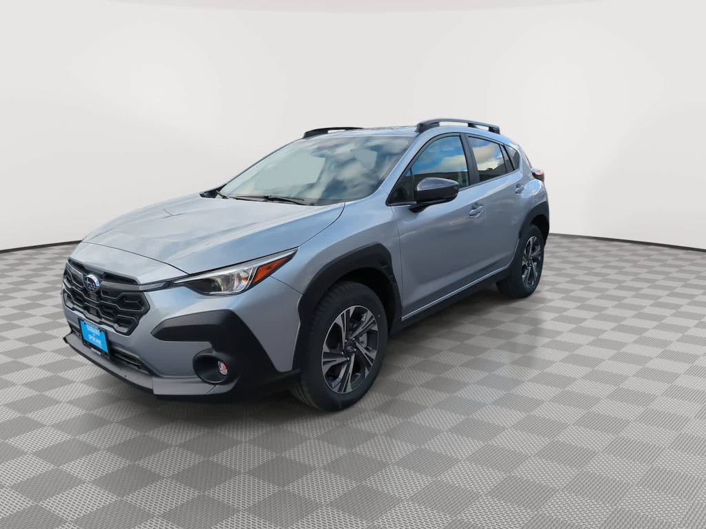 Ice Silver Metallic 2026 Subaru Crosstrek Premium AWD Lineartronic CVT 2.5L 4-Cylinder DOHC 16V 4-Wheel Disc Brakes, 6 Speakers, ABS brakes, Air Conditioning, Alloy wheels, Anti-whiplash front head restraints, Auto High-beam Headlights, Automatic temperature control, Brake assist, Bumpers: body-color, Cloth Upholstery, Driver door bin, Driver vanity mirror, Dual front impact airbags, Dual front side impact airbags, Electronic Stability Control, Emergency communication system: MySubaru Companion (5-years free), Exterior Parking Camera Rear, Four wheel independent suspension, Front anti-roll bar, Front Bucket Seats, Front Center Armrest, Front dual zone A/C, Front fog lights, Front reading lights, Fully automatic headlights, Illuminated entry, Knee airbag, Low tire pressure warning, Occupant sensing airbag, Outside temperature display, Overhead airbag, Overhead console, Panic alarm, Passenger door bin, Passenger vanity mirror, Power door mirrors, Power steering, Power windows, Radio data system, Radio: Subaru 11.6 Multimedia Plus System, Rear anti-roll bar, Rear seat center armrest, Rear side impact airbag, Rear window defroster, Rear window wiper, Remote keyless entry, Security system, Speed control, Speed-sensing steering, Split folding rear seat, Spoiler, Steering wheel mounted audio controls, Tachometer, Telescoping steering wheel, Tilt steering wheel, Traction control, Trip computer, Turn signal indicator mirrors, Variably intermittent wipers, Wheels: 17 x 7.0 J Machine Finish Aluminum-Alloy.