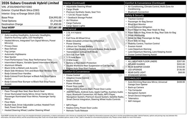 Key features of this Crosstrek Hybrid Limited include: