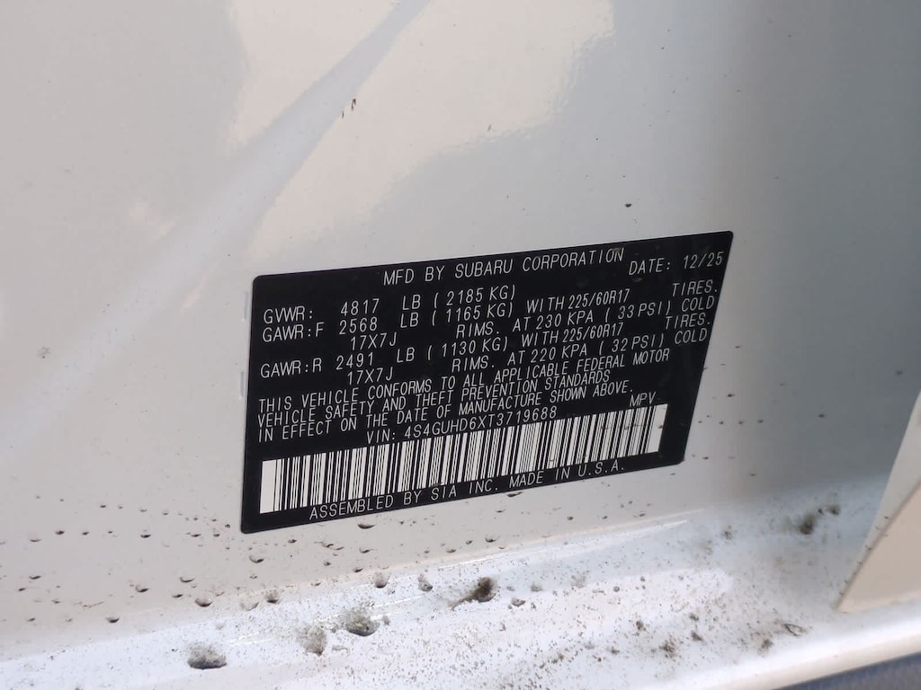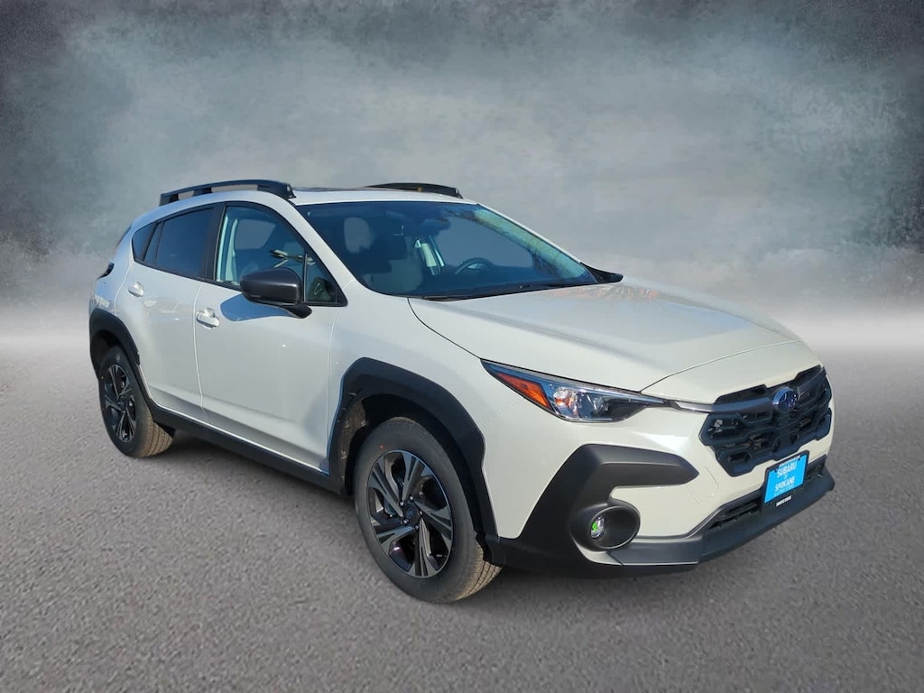 Crystal White Pearl 2026 Subaru Crosstrek Premium AWD Lineartronic CVT 2.5L 4-Cylinder DOHC 16V 4-Wheel Disc Brakes, 6 Speakers, ABS brakes, Air Conditioning, Alloy wheels, AM/FM radio: SiriusXM, Anti-whiplash front head restraints, Auto High-beam Headlights, Automatic temperature control, Brake assist, Bumpers: body-color, Cloth Upholstery, Driver door bin, Driver vanity mirror, Dual front impact airbags, Dual front side impact airbags, Electronic Stability Control, Emergency communication system: MySubaru Companion (5-years free), Exterior Parking Camera Rear, Four wheel independent suspension, Front anti-roll bar, Front Bucket Seats, Front Center Armrest, Front dual zone A/C, Front fog lights, Front reading lights, Fully automatic headlights, Illuminated entry, Knee airbag, Low tire pressure warning, Occupant sensing airbag, Outside temperature display, Overhead airbag, Overhead console, Panic alarm, Passenger door bin, Passenger vanity mirror, Power door mirrors, Power steering, Power windows, Radio data system, Radio: Subaru 11.6 Multimedia Plus System, Rear anti-roll bar, Rear seat center armrest, Rear side impact airbag, Rear window defroster, Rear window wiper, Remote keyless entry, Security system, Speed control, Speed-sensing steering, Split folding rear seat, Spoiler, Steering wheel mounted audio controls, Tachometer, Telescoping steering wheel, Tilt steering wheel, Traction control, Trip computer, Turn signal indicator mirrors, Variably intermittent wipers, Wheels: 17 x 7.0 J Machine Finish Aluminum-Alloy.