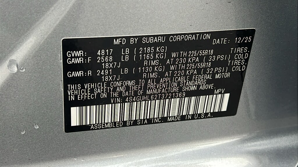 - Forward collision: EyeSight Pre-Collision Braking mitigation