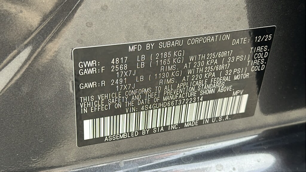 BSD/RCTA & ALL WTHR PKG & PWR DR. SEAT & PWR MOONRF automatic emergency steering, emergency lane keep assist, system off switch, BSD/RCTA detection indicator exterior power mirrors, rear radar detection sensors and lane change assist, Rear Cross-Traffic Alert (RCTA) System, off and malfunction warning indicator and audible vehicle detection warning, 10-Way Power Drivers Seat, 2-way lumbar support, Blind Spot Detection (BSD), All-Weather Package, Heated Power Exterior Mirrors, Dual-Mode Heated Front Seats, Windshield De-Icer Wipers, Power Moonroof, tilt up and internal retracting w/auto-open/close and laminated, UV and dark tint moonroof glass, CONVENIENCE PACKAGE #2 Auto-Dimming Mirror w/Compass & HomeLink, Splash Guards, Rear Bumper Cover. Subaru Premium with Magnetite Gray Metallic/Crystal Black Silica exterior and Gray interior features a 4 Cylinder Engine with 180 HP at 5800 RPM*.