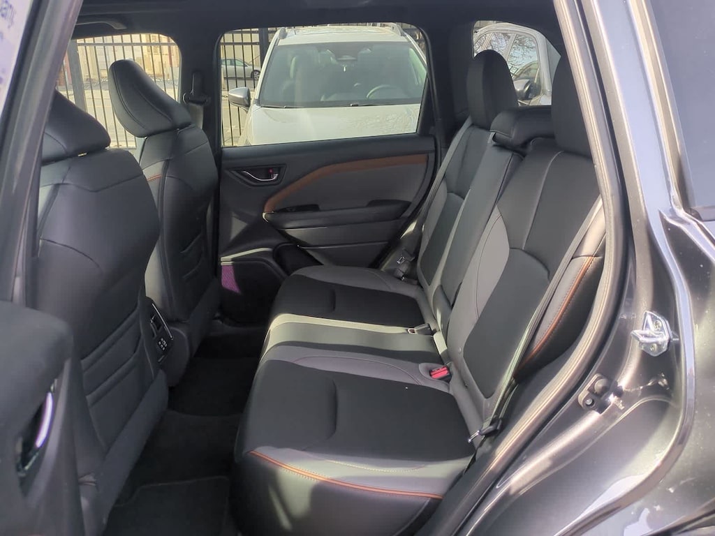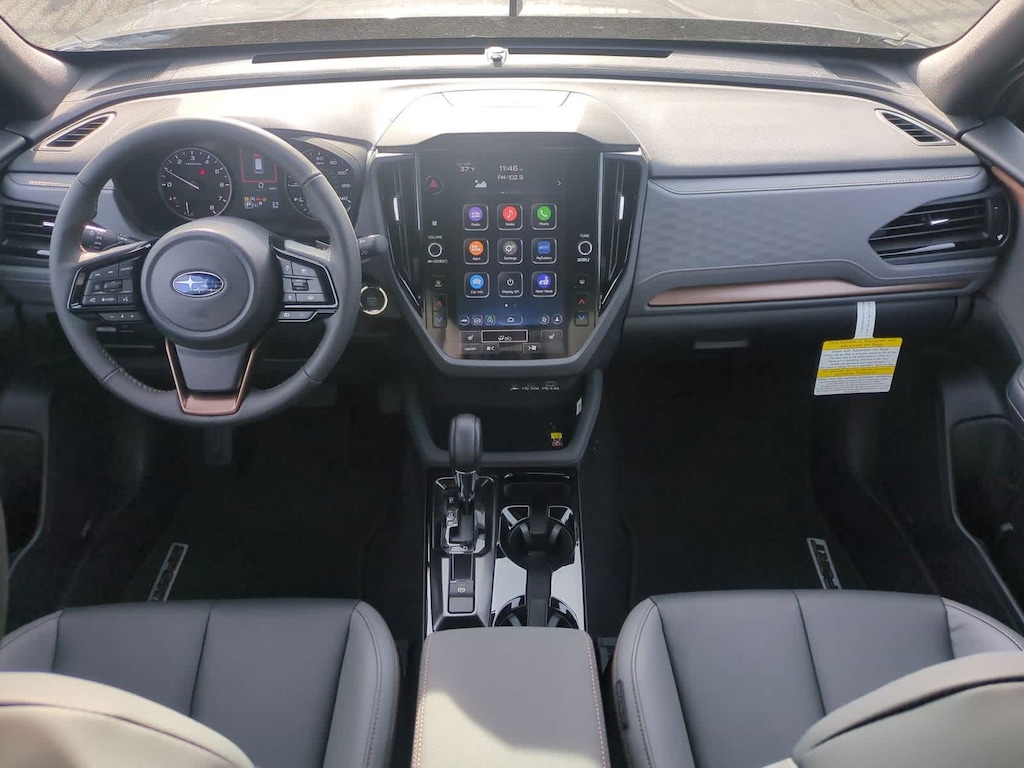 Magnetite Gray Metallic 2026 Subaru Forester Sport AWD Lineartronic CVT 2.5L 4-Cylinder DOHC 16V 4-Wheel Disc Brakes, 6 Speakers, ABS brakes, Air Conditioning, Alloy wheels, AM/FM radio: SiriusXM with 360L, Anti-whiplash front head restraints, Auto High-beam Headlights, Automatic temperature control, Brake assist, Bumpers: body-color, Driver door bin, Driver vanity mirror, Dual front impact airbags, Dual front side impact airbags, Electronic Stability Control, Emergency communication system: MySubaru Companion (5-years free), Exterior Parking Camera Rear, Four wheel independent suspension, Front anti-roll bar, Front Bucket Seats, Front Center Armrest, Front dual zone A/C, Front fog lights, Front reading lights, Fully automatic headlights, Heated door mirrors, Heated Front Bucket Seats, Heated front seats, Illuminated entry, Knee airbag, Leather steering wheel, Low tire pressure warning, Occupant sensing airbag, Outside temperature display, Overhead airbag, Overhead console, Panic alarm, Passenger door bin, Passenger vanity mirror, Power door mirrors, Power driver seat, Power moonroof: Panoramic, Power steering, Power windows, Radio data system, Radio: Subaru 11.6 Multimedia Plus System, Rear anti-roll bar, Rear seat center armrest, Rear window defroster, Rear window wiper, Remote keyless entry, Security system, Speed control, Speed-sensing steering, Split folding rear seat, Spoiler, Sport StarTex Upholstery, Steering wheel mounted audio controls, Tachometer, Telescoping steering wheel, Tilt steering wheel, Traction control, Trip computer, Turn signal indicator mirrors, Variably intermittent wipers, Wheels: 19 x 7.5 J Bronze Finish Aluminum-Alloy.