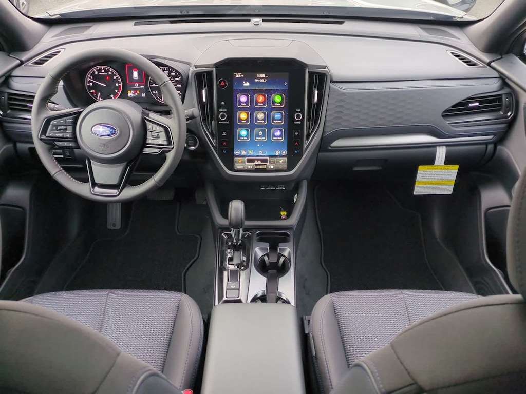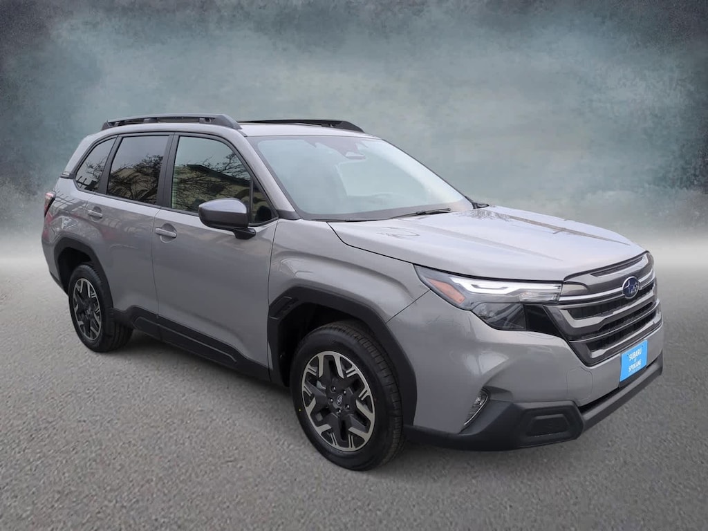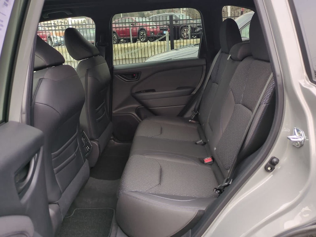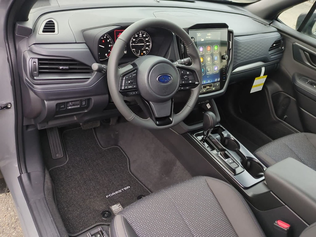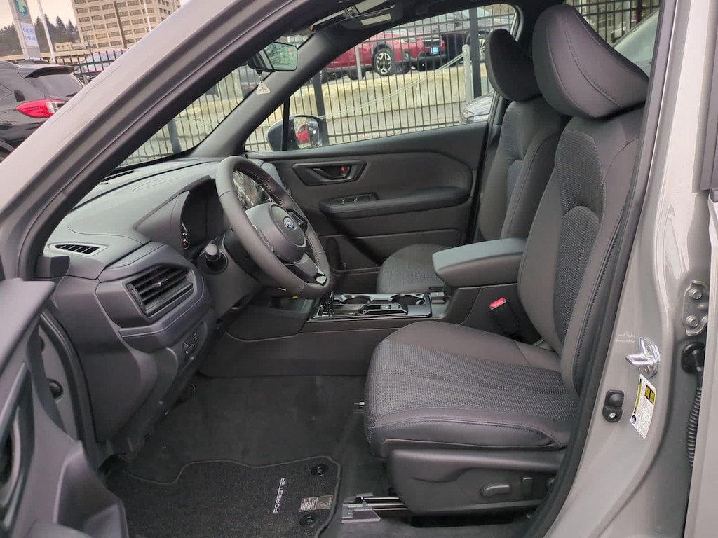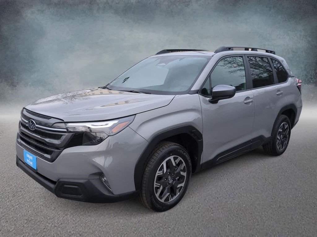 River Rock Pearl 2026 Subaru Forester Premium AWD Lineartronic CVT 2.5L 4-Cylinder DOHC 16V 4-Wheel Disc Brakes, 6 Speakers, ABS brakes, Air Conditioning, Alloy wheels, AM/FM radio: SiriusXM with 360L, Anti-whiplash front head restraints, Auto High-beam Headlights, Automatic temperature control, Brake assist, Bumpers: body-color, Driver door bin, Driver vanity mirror, Dual front impact airbags, Dual front side impact airbags, Electronic Stability Control, Emergency communication system: MySubaru Companion (5-years free), Exterior Parking Camera Rear, Four wheel independent suspension, Front anti-roll bar, Front Bucket Seats, Front Center Armrest, Front dual zone A/C, Front fog lights, Front reading lights, Fully automatic headlights, Heated door mirrors, Heated Front Bucket Seats, Heated front seats, Illuminated entry, Knee airbag, Leather steering wheel, Low tire pressure warning, Occupant sensing airbag, Outside temperature display, Overhead airbag, Overhead console, Panic alarm, Passenger door bin, Passenger vanity mirror, Power door mirrors, Power driver seat, Power moonroof: Panoramic, Power steering, Power windows, Premium Textured Cloth Upholstery, Radio data system, Radio: Subaru 11.6 Multimedia Plus System, Rear anti-roll bar, Rear seat center armrest, Rear window defroster, Rear window wiper, Remote keyless entry, Security system, Speed control, Speed-sensing steering, Split folding rear seat, Spoiler, Steering wheel mounted audio controls, Tachometer, Telescoping steering wheel, Tilt steering wheel, Traction control, Trip computer, Variably intermittent wipers, Wheels: 17 x 7.0 J Dark Metallic Aluminum-Alloy.