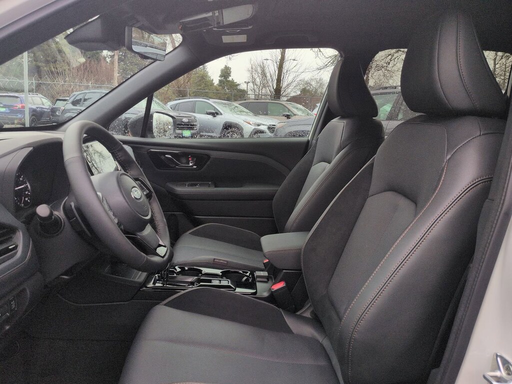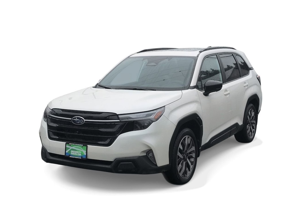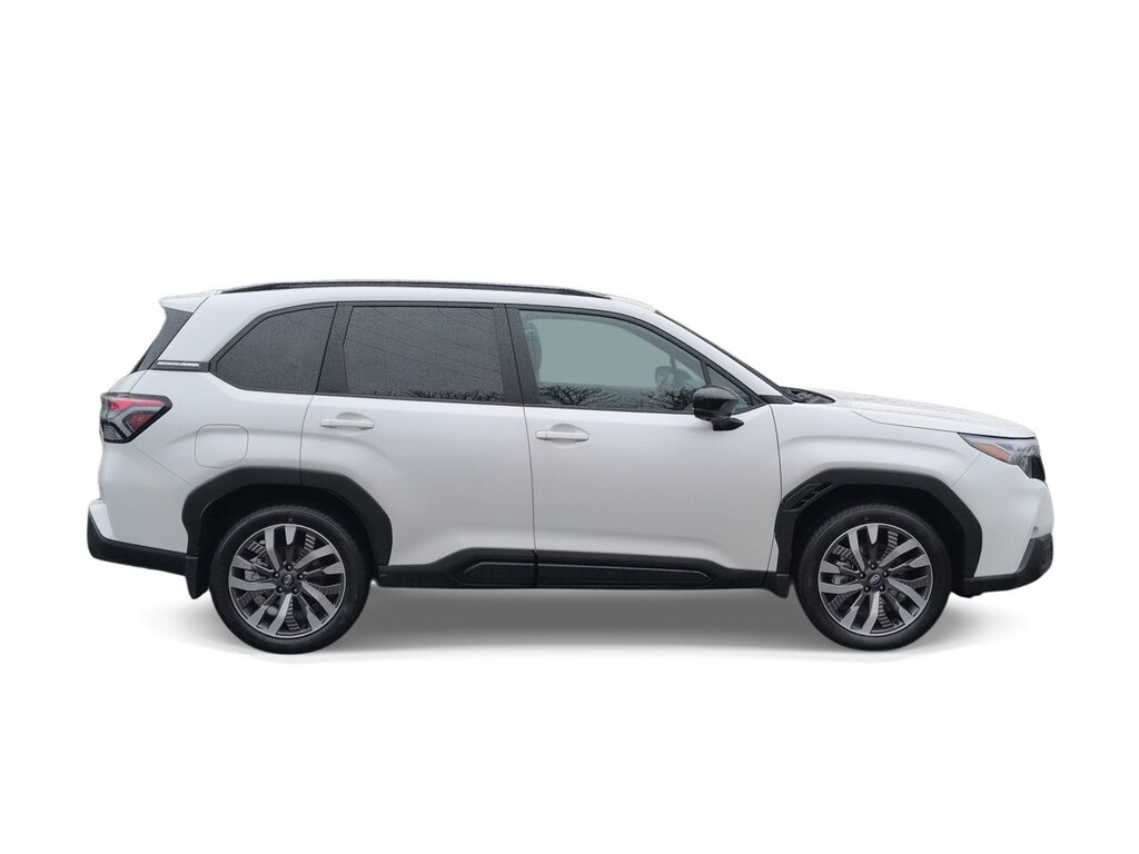 Crystal White Pearl 2026 Subaru Forester Touring AWD Lineartronic CVT 2.5L 4-Cylinder DOHC 16V 11 Speakers, 4-Wheel Disc Brakes, ABS brakes, Air Conditioning, All-Weather Floor Liners, Alloy wheels, AM/FM radio: SiriusXM with 360L, Anti-whiplash front head restraints, Auto High-beam Headlights, Auto-Dimming Exterior Mirror with Approach Light, Automatic temperature control, Brake assist, Bumpers: body-color, Cargo Net, Cargo Tray, Driver door bin, Driver vanity mirror, Dual front impact airbags, Dual front side impact airbags, Electronic Stability Control, Emergency communication system: MySubaru Companion (5-years free), Exterior Parking Camera Rear, Four wheel independent suspension, Front anti-roll bar, Front Bucket Seats, Front Center Armrest, Front dual zone A/C, Front fog lights, Front reading lights, Fully automatic headlights, harman/kardonî Speakers, Heads-Up Display, Heated and Ventilated Front Bucket Seats, Heated door mirrors, Heated front seats, Heated rear seats, Heated steering wheel, HVAC memory, Illuminated entry, Knee airbag, Leather Shift Knob, Leather steering wheel, Low tire pressure warning, Memory seat, Navigation System, Occupant sensing airbag, Outside temperature display, Overhead airbag, Overhead console, Panic alarm, Passenger door bin, Passenger vanity mirror, Perforated Leather-Trimmed Upholstery, Power door mirrors, Power driver seat, Power Liftgate, Power moonroof: Panoramic, Power passenger seat, Power steering, Power windows, Radio data system, Radio: Subaru 11.6 Multimedia Navigation System, Rain sensing wipers, Rear anti-roll bar, Rear Bumper Cover, Rear seat center armrest, Rear window defroster, Rear window wiper, Remote keyless entry, Security system, Speed control, Speed-sensing steering, Splash Guards, Split folding rear seat, Spoiler, Standard Model, Steering wheel mounted audio controls, Tachometer, Telescoping steering wheel, Tilt steering wheel, Traction control, Trip computer, Turn signal indicator mirrors, Variably intermittent wipers, Ventilated front seats, Wheels: 19 x 7.5 J Dark Gray Aluminum-Alloy.