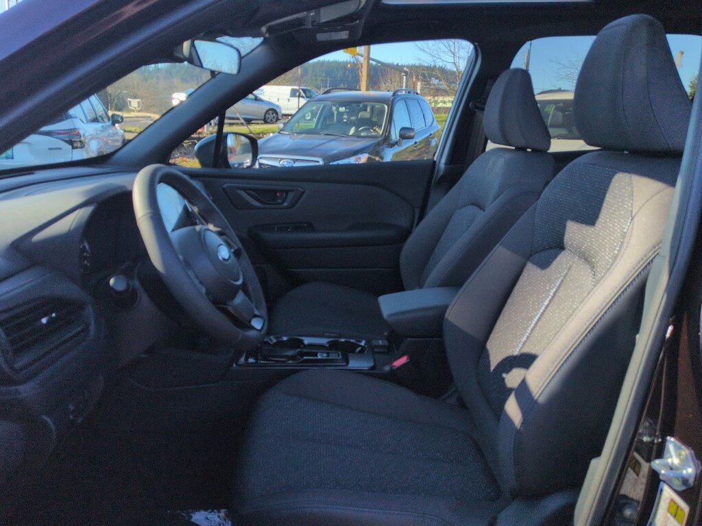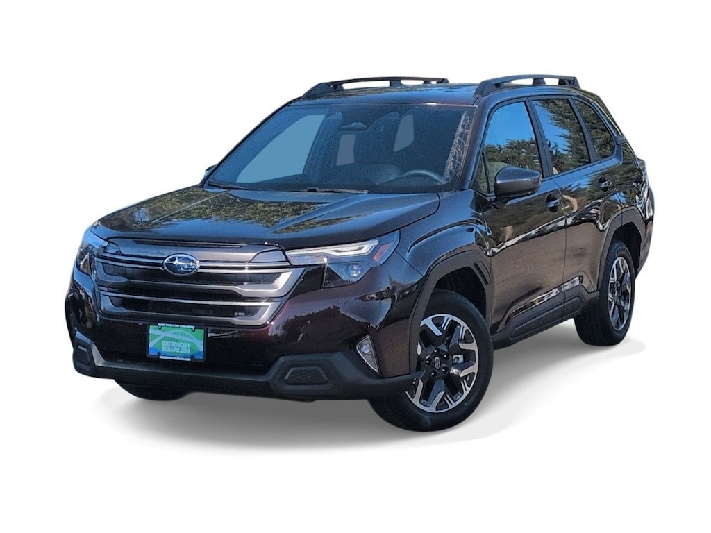 Dark Mahogany Pearl 2026 Subaru Forester Premium AWD Lineartronic CVT 2.5L 4-Cylinder DOHC 16V 4-Wheel Disc Brakes, 6 Speakers, ABS brakes, Air Conditioning, Alloy wheels, AM/FM radio: SiriusXM with 360L, Anti-whiplash front head restraints, Auto High-beam Headlights, Automatic Emergency Steering, Automatic temperature control, Blind-Spot Detection (BSD)/RCTA System, Brake assist, Bumpers: body-color, Cargo Tray, Driver door bin, Driver vanity mirror, Dual front impact airbags, Dual front side impact airbags, Electronic Stability Control, Emergency communication system: MySubaru Companion (5-years free), Emergency Lane Keep Assist, Exterior Parking Camera Rear, Four wheel independent suspension, Front anti-roll bar, Front Bucket Seats, Front Center Armrest, Front dual zone A/C, Front fog lights, Front reading lights, Fully automatic headlights, Heated door mirrors, Heated Front Bucket Seats, Heated front seats, Illuminated entry, Knee airbag, Leather steering wheel, Low tire pressure warning, Occupant sensing airbag, Outside temperature display, Overhead airbag, Overhead console, Panic alarm, Passenger door bin, Passenger vanity mirror, Power door mirrors, Power driver seat, Power moonroof: Panoramic, Power Rear Gate, Power Rear Gate and Blind Spot Detection with Rear Cross Traffic Alert, Power steering, Power windows, Premium Textured Cloth Upholstery, Radio data system, Radio: Subaru 11.6 Multimedia Plus System, Rear anti-roll bar, Rear seat center armrest, Rear Seatback Protector, Rear window defroster, Rear window wiper, Remote keyless entry, Security system, Speed control, Speed-sensing steering, Split folding rear seat, Spoiler, Steering wheel mounted audio controls, Tachometer, Telescoping steering wheel, Tilt steering wheel, Traction control, Trip computer, Variably intermittent wipers, Wheels: 17 x 7.0 J Dark Metallic Aluminum-Alloy.