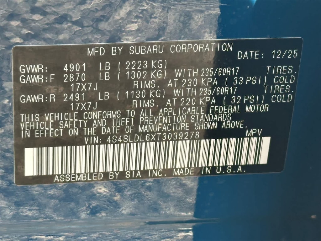 - 4S4SLDL6XT3039278