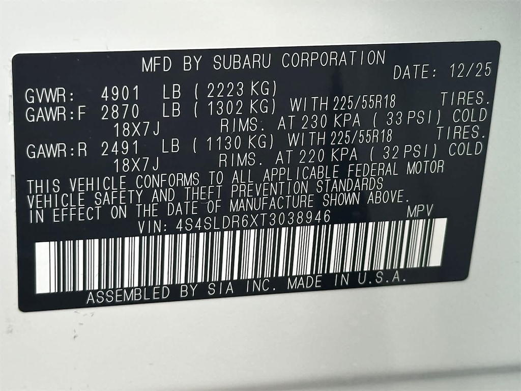 - 4S4SLDR6XT3038946