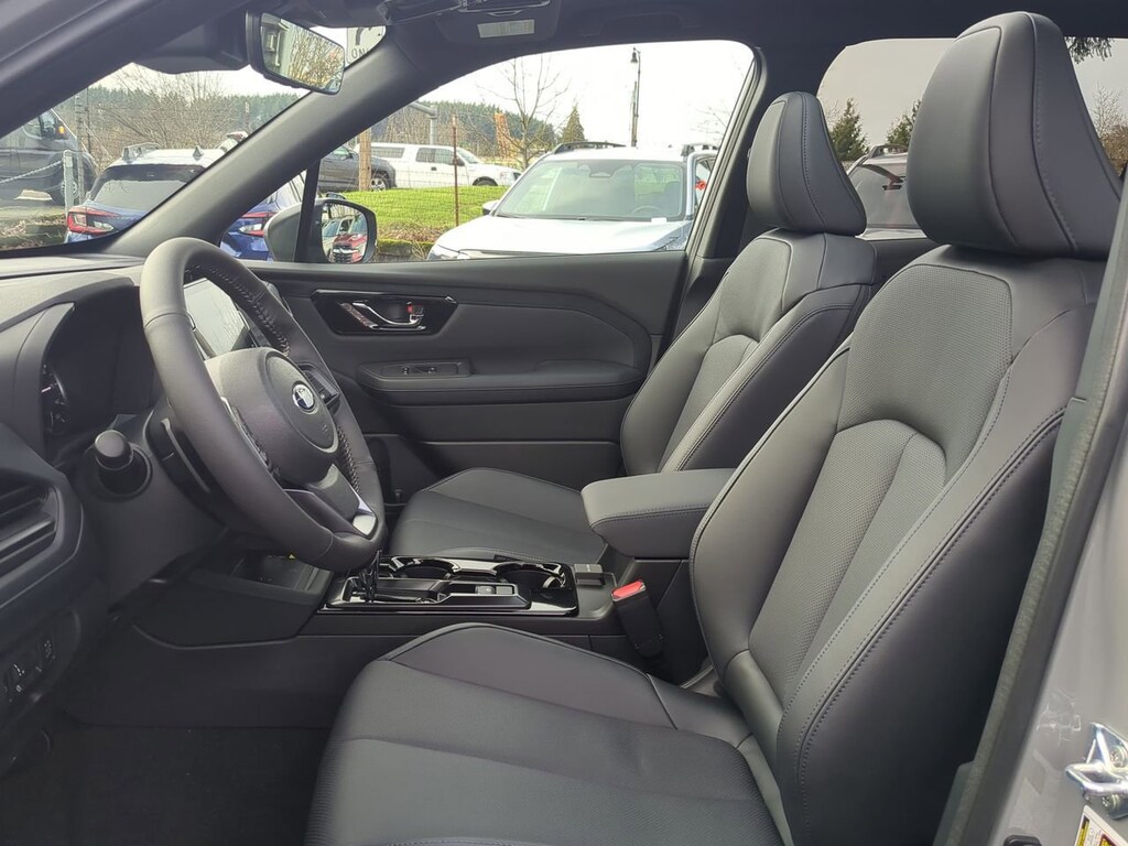 River Rock Pearl 2026 Subaru Forester Limited AWD Lineartronic CVT 2.5L 4-Cylinder DOHC 16V 4-Wheel Disc Brakes, 6 Speakers, ABS brakes, Air Conditioning, All-Weather Floor Liners, Alloy wheels, AM/FM radio: SiriusXM with 360L, Anti-whiplash front head restraints, Auto High-beam Headlights, Auto-Dimming Exterior Mirror with Approach Light, Auto-Dimming Mirror with Compass and HomeLink, Automatic temperature control, Brake assist, Bumpers: body-color, Cargo Tray, Driver door bin, Driver vanity mirror, Dual front impact airbags, Dual front side impact airbags, Electronic Stability Control, Emergency communication system: MySubaru Companion (5-years free), Exterior Parking Camera Rear, Four wheel independent suspension, Front anti-roll bar, Front Bucket Seats, Front Center Armrest, Front dual zone A/C, Front fog lights, Front reading lights, Fully automatic headlights, Harman/Kardon Speaker System and Navigation and Reverse Automatic Braking, Heated door mirrors, Heated Front Bucket Seats, Heated front seats, Heated steering wheel, Illuminated entry, Knee airbag, Leather steering wheel, Low tire pressure warning, Occupant sensing airbag, Outside temperature display, Overhead airbag, Overhead console, Panic alarm, Passenger door bin, Passenger vanity mirror, Perforated Leather-Trimmed Upholstery, Power door mirrors, Power driver seat, Power Liftgate, Power moonroof: Panoramic, Power passenger seat, Power steering, Power windows, Radio data system, Radio: Subaru 11.6 Multimedia Navigation System, Radio: Subaru 11.6 Multimedia Plus System, Rain sensing wipers, Rear anti-roll bar, Rear Bumper Cover, Rear seat center armrest, Rear window defroster, Rear window wiper, Remote keyless entry, Reverse Automatic Braking (RAB) System, Security system, Speed control, Speed-sensing steering, Split folding rear seat, Spoiler, Steering wheel mounted audio controls, Tachometer, Telescoping steering wheel, Tilt steering wheel, Traction control, Trip computer, Turn signal indicator mirrors, Variably intermittent wipers, Wheels: 18 x 7.0 J Dark Metallic Aluminum-Alloy.