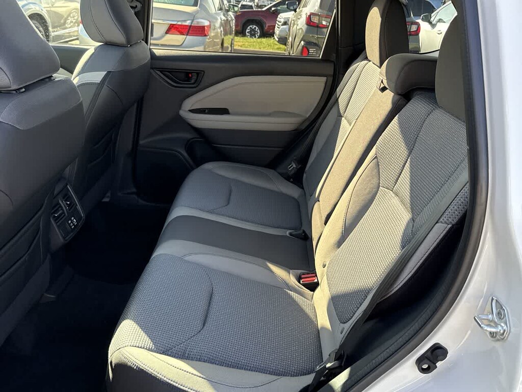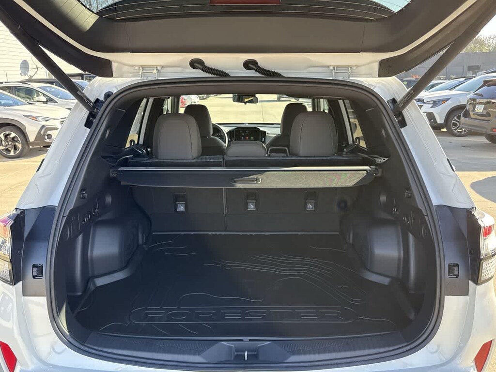 Forester Premium is nicely equipped with Power Rear Gate and Blind Spot Detection with Rear Cross Traffic Alert (Automatic Emergency Steering, Blind-Spot Detection (BSD)/RCTA System, Emergency Lane Keep Assist, and Power Rear Gate), 4-Wheel Disc Brakes, 6 Speakers, ABS brakes, Air Conditioning, All-Weather Floor Liners, Alloy wheels, AM/FM radio: SiriusXM with 360L, Anti-whiplash front head restraints, Auto High-beam Headlights, Automatic temperature control, Brake assist, Bumpers: body-color, Cargo Tray, Driver door bin, Driver vanity mirror, Dual front impact airbags, Dual front side impact airbags, Electronic Stability Control, Emergency communication system: MySubaru Companion (5-years free), Exterior Parking Camera Rear, Four wheel independent suspension, Front anti-roll bar, Front Bucket Seats, Front Center Armrest, Front dual zone A/C, Front fog lights, Front reading lights, Fully automatic headlights, Heated door mirrors, Heated Front Bucket Seats, Heated front seats, Illuminated entry, Knee airbag, Leather steering wheel, Low tire pressure warning, Occupant sensing airbag, Outside temperature display, Overhead airbag, Overhead console, Panic alarm, Passenger door bin, Passenger vanity mirror, Power door mirrors, Power driver seat, Power moonroof: Panoramic, Power steering, Power windows, Premium Textured Cloth Upholstery, Radio data system, Radio: Subaru 11.6 Multimedia Plus System, Rear anti-roll bar, Rear Bumper Cover, Rear seat center armrest, Rear window defroster, Rear window wiper, Remote keyless entry, Security system, Speed control, Speed-sensing steering, Splash Guards, Split folding rear seat, Spoiler, Steering wheel mounted audio controls, Tachometer, Telescoping steering wheel, Tilt steering wheel, Traction control, Trip computer, Variably intermittent wipers, and Wheels: 17 x 7.0 J Dark Metallic Aluminum-Alloy.