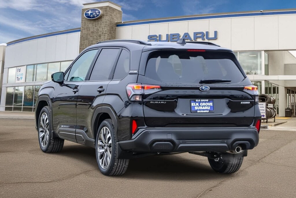 This 2026 Subaru Forester Touring is finished in the Crystal Black Silica exterior paint and Touring Brown Leather interior.