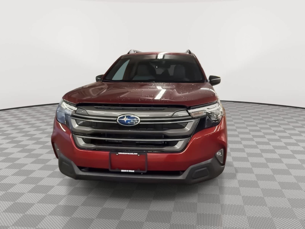 Crimson Red Pearl 2026 Subaru Forester Premium AWD Lineartronic CVT 2.5L 4-Cylinder DOHC 16V ABS brakes, Active Cruise Control, Alloy wheels, Compass, Electronic Stability Control, Front dual zone A/C, Heated door mirrors, Heated Front Bucket Seats, Heated front seats, Illuminated entry, Low tire pressure warning, Navigation System, Power Liftgate, Remote keyless entry, Traction control, 4-Wheel Disc Brakes, 6 Speakers, Air Conditioning, AM/FM radio: SiriusXM with 360L, Anti-whiplash front head restraints, Auto High-beam Headlights, Automatic temperature control, Brake assist, Bumpers: body-color, Driver door bin, Driver vanity mirror, Dual front impact airbags, Dual front side impact airbags, Emergency communication system: MySubaru Companion (5-years free), Exterior Parking Camera Rear, Four wheel independent suspension, Front anti-roll bar, Front Bucket Seats, Front Center Armrest, Front fog lights, Front reading lights, Fully automatic headlights, Knee airbag, Occupant sensing airbag, Outside temperature display, Overhead airbag, Overhead console, Panic alarm, Passenger door bin, Passenger vanity mirror, Power door mirrors, Power driver seat, Power moonroof: Panoramic, Power steering, Power windows, Premium Textured Cloth Upholstery, Radio data system, Radio: Subaru 11.6 Multimedia Navigation System, Rear anti-roll bar, Rear seat center armrest, Rear window defroster, Rear window wiper, Security system, Speed control, Speed-sensing steering, Split folding rear seat, Spoiler, Steering wheel mounted audio controls, Tachometer, Telescoping steering wheel, Tilt steering wheel, Trip computer, Variably intermittent wipers, Wheels: 18 x 7.0 J Dark Metallic Aluminum-Alloy, ABS brakes, Active Cruise Control, Alloy wheels, Compass, Electronic Stability Control, Front dual zone A/C, Heated door mirrors, Heated Front Bucket Seats, Heated front seats, Illuminated entry, Low tire pressure warning, Navigation System, Power Liftgate, Remote keyless entry, Traction control.