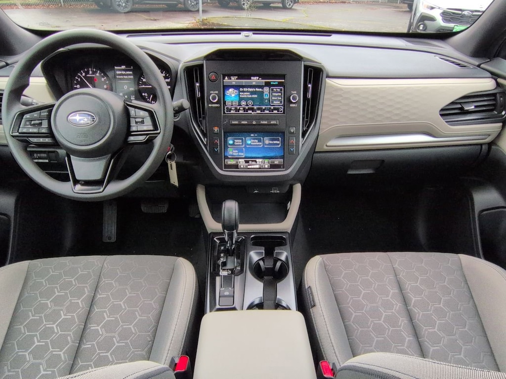Magnetite Gray Metallic 2026 Subaru Forester AWD Lineartronic CVT 2.5L 4-Cylinder DOHC 16V 4 Speakers, 4-Wheel Disc Brakes, ABS brakes, Air Conditioning, All-Weather Floor Liners, Alloy wheels, AM/FM radio: SiriusXM, Anti-whiplash front head restraints, Auto High-beam Headlights, Automatic temperature control, Brake assist, Bumpers: body-color, Cargo Cover, Cargo Tray, Driver door bin, Driver vanity mirror, Dual front impact airbags, Dual front side impact airbags, Electronic Stability Control, Exterior Parking Camera Rear, Four wheel independent suspension, Front anti-roll bar, Front Bucket Seats, Front Center Armrest, Front dual zone A/C, Front reading lights, Fully automatic headlights, Hexagonal Patterned Cloth Upholstery, Illuminated entry, Knee airbag, Low tire pressure warning, Occupant sensing airbag, Outside temperature display, Overhead airbag, Overhead console, Panic alarm, Passenger door bin, Passenger vanity mirror, Power door mirrors, Power steering, Power windows, Radio data system, Radio: Subaru Dual 7.0 Multimedia System, Rear anti-roll bar, Rear window defroster, Rear window wiper, Remote keyless entry, Security system, Speed control, Speed-sensing steering, Split folding rear seat, Spoiler, Standard Model, Steering wheel mounted audio controls, Tachometer, Telescoping steering wheel, Tilt steering wheel, Traction control, Trip computer, Variably intermittent wipers, Wheels: 17 x 7.0 J Dark Metallic Aluminum-Alloy.