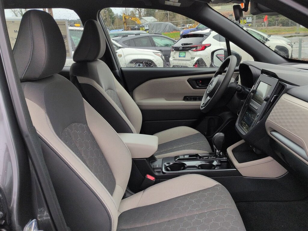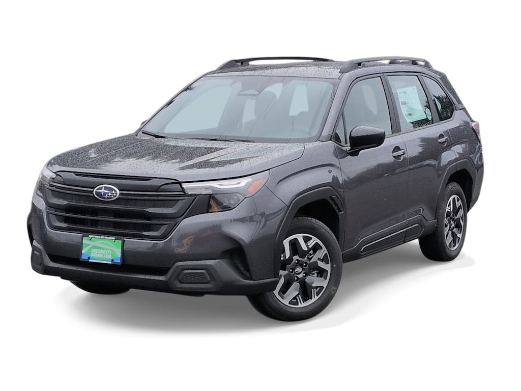 Magnetite Gray Metallic 2026 Subaru Forester AWD Lineartronic CVT 2.5L 4-Cylinder DOHC 16V 4 Speakers, 4-Wheel Disc Brakes, ABS brakes, Air Conditioning, All-Weather Floor Liners, Alloy wheels, AM/FM radio: SiriusXM, Anti-whiplash front head restraints, Auto High-beam Headlights, Automatic temperature control, Brake assist, Bumpers: body-color, Cargo Cover, Cargo Tray, Driver door bin, Driver vanity mirror, Dual front impact airbags, Dual front side impact airbags, Electronic Stability Control, Exterior Parking Camera Rear, Four wheel independent suspension, Front anti-roll bar, Front Bucket Seats, Front Center Armrest, Front dual zone A/C, Front reading lights, Fully automatic headlights, Hexagonal Patterned Cloth Upholstery, Illuminated entry, Knee airbag, Low tire pressure warning, Occupant sensing airbag, Outside temperature display, Overhead airbag, Overhead console, Panic alarm, Passenger door bin, Passenger vanity mirror, Power door mirrors, Power steering, Power windows, Radio data system, Radio: Subaru Dual 7.0 Multimedia System, Rear anti-roll bar, Rear window defroster, Rear window wiper, Remote keyless entry, Security system, Speed control, Speed-sensing steering, Split folding rear seat, Spoiler, Standard Model, Steering wheel mounted audio controls, Tachometer, Telescoping steering wheel, Tilt steering wheel, Traction control, Trip computer, Variably intermittent wipers, Wheels: 17 x 7.0 J Dark Metallic Aluminum-Alloy.
