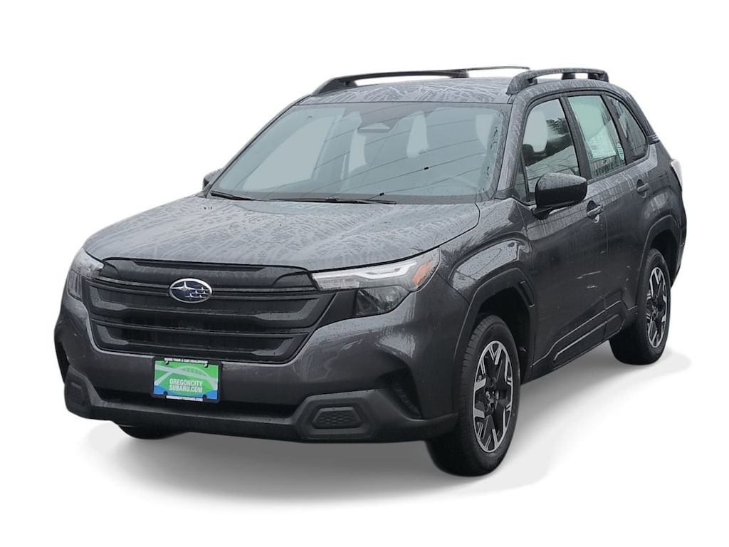 Magnetite Gray Metallic 2026 Subaru Forester AWD Lineartronic CVT 2.5L 4-Cylinder DOHC 16V 4 Speakers, 4-Wheel Disc Brakes, ABS brakes, Air Conditioning, Alloy wheels, AM/FM radio: SiriusXM, Anti-whiplash front head restraints, Auto High-beam Headlights, Automatic temperature control, Brake assist, Bumpers: body-color, Driver door bin, Driver vanity mirror, Dual front impact airbags, Dual front side impact airbags, Electronic Stability Control, Exterior Parking Camera Rear, Four wheel independent suspension, Front anti-roll bar, Front Bucket Seats, Front Center Armrest, Front dual zone A/C, Front reading lights, Fully automatic headlights, Hexagonal Patterned Cloth Upholstery, Illuminated entry, Knee airbag, Low tire pressure warning, Occupant sensing airbag, Outside temperature display, Overhead airbag, Overhead console, Panic alarm, Passenger door bin, Passenger vanity mirror, Power door mirrors, Power steering, Power windows, Radio data system, Radio: Subaru Dual 7.0 Multimedia System, Rear anti-roll bar, Rear window defroster, Rear window wiper, Remote keyless entry, Security system, Speed control, Speed-sensing steering, Split folding rear seat, Spoiler, Steering wheel mounted audio controls, Tachometer, Telescoping steering wheel, Tilt steering wheel, Traction control, Trip computer, Variably intermittent wipers, Wheels: 17 x 7.0 J Dark Metallic Aluminum-Alloy.