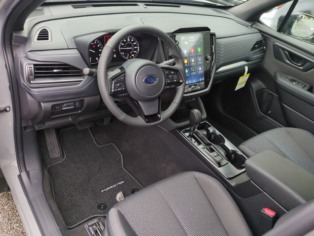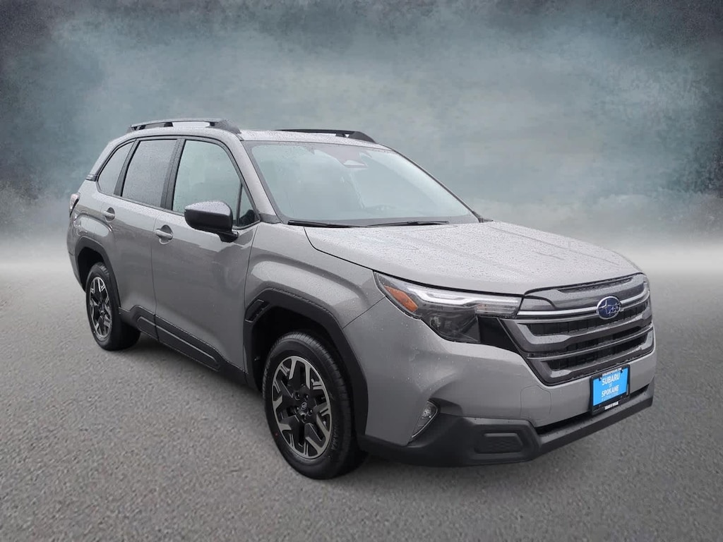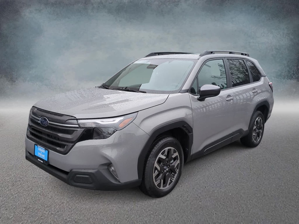 River Rock Pearl 2026 Subaru Forester Premium AWD Lineartronic CVT 2.5L 4-Cylinder DOHC 16V 4-Wheel Disc Brakes, 6 Speakers, ABS brakes, Air Conditioning, Alloy wheels, AM/FM radio: SiriusXM with 360L, Anti-whiplash front head restraints, Auto High-beam Headlights, Auto-Dimming Exterior Mirror with Approach Light, Auto-Dimming Mirror with Compass and HomeLink, Automatic Emergency Steering, Automatic temperature control, Blind-Spot Detection (BSD)/RCTA System, Brake assist, Bumpers: body-color, Driver door bin, Driver vanity mirror, Dual front impact airbags, Dual front side impact airbags, Electronic Stability Control, Emergency communication system: MySubaru Companion (5-years free), Emergency Lane Keep Assist, Exterior Parking Camera Rear, Four wheel independent suspension, Front anti-roll bar, Front Bucket Seats, Front Center Armrest, Front dual zone A/C, Front fog lights, Front reading lights, Fully automatic headlights, Heated door mirrors, Heated Front Bucket Seats, Heated front seats, Illuminated entry, Knee airbag, Leather steering wheel, Low tire pressure warning, Occupant sensing airbag, Outside temperature display, Overhead airbag, Overhead console, Panic alarm, Passenger door bin, Passenger vanity mirror, Power door mirrors, Power driver seat, Power moonroof: Panoramic, Power Rear Gate, Power Rear Gate and Blind Spot Detection with Rear Cross Traffic Alert, Power steering, Power windows, Premium Textured Cloth Upholstery, Radio data system, Radio: Subaru 11.6 Multimedia Plus System, Rear anti-roll bar, Rear seat center armrest, Rear window defroster, Rear window wiper, Remote keyless entry, Security system, Speed control, Speed-sensing steering, Split folding rear seat, Spoiler, Steering wheel mounted audio controls, Tachometer, Telescoping steering wheel, Tilt steering wheel, Traction control, Trip computer, Variably intermittent wipers, Wheels: 17 x 7.0 J Dark Metallic Aluminum-Alloy.