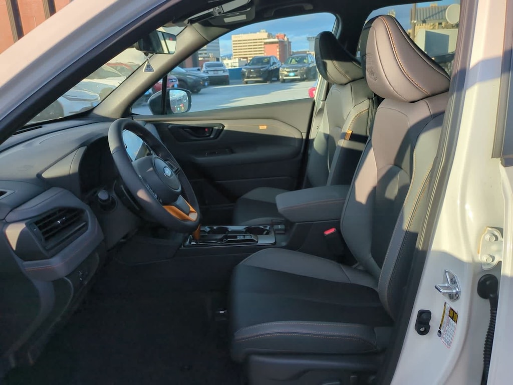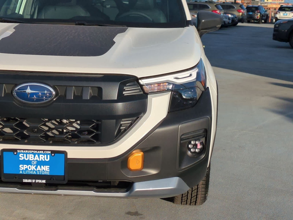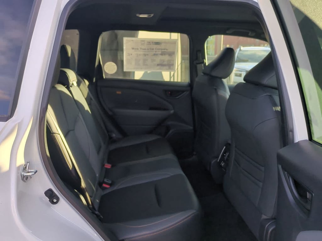 Wh3/ 2026 Subaru Forester Wilderness AWD Lineartronic CVT 2.5L 4-Cylinder DOHC 16V 4-Wheel Disc Brakes, 6 Speakers, ABS brakes, Air Conditioning, Alloy wheels, AM/FM radio: SiriusXM with 360L, Anti-whiplash front head restraints, Auto High-beam Headlights, Automatic temperature control, Brake assist, Bumpers: body-color, Driver door bin, Driver vanity mirror, Dual front impact airbags, Dual front side impact airbags, Electronic Stability Control, Emergency communication system: MySubaru Companion (5-years free), Exterior Parking Camera Rear, Four wheel independent suspension, Front anti-roll bar, Front Bucket Seats, Front Center Armrest, Front dual zone A/C, Front fog lights, Front reading lights, Fully automatic headlights, Heated door mirrors, Heated Front Bucket Seats, Heated front seats, Illuminated entry, Knee airbag, Low tire pressure warning, Occupant sensing airbag, Outside temperature display, Overhead airbag, Overhead console, Panic alarm, Passenger door bin, Passenger vanity mirror, Power door mirrors, Power driver seat, Power moonroof: Panoramic, Power steering, Power windows, Radio data system, Radio: Subaru 11.6 Multimedia Plus System, Rain sensing wipers, Rear anti-roll bar, Rear seat center armrest, Rear window defroster, Rear window wiper, Remote keyless entry, Security system, Speed control, Speed-sensing steering, Split folding rear seat, Spoiler, Steering wheel mounted audio controls, Tachometer, Telescoping steering wheel, Textured StarTex Upholstery, Tilt steering wheel, Traction control, Trip computer, Turn signal indicator mirrors, Variably intermittent wipers, Wheels: 17 x 7.0 J Matte Black Finish Aluminum-Alloy.