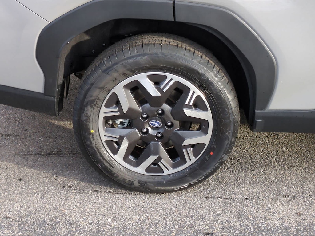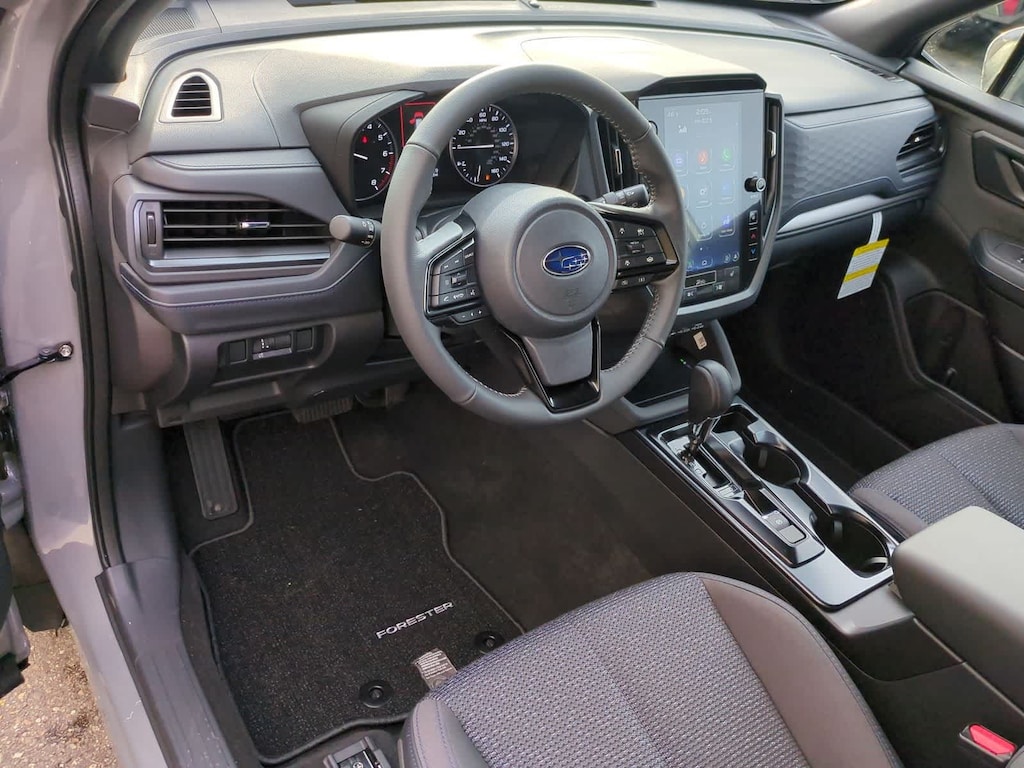 River Rock Pearl 2026 Subaru Forester Premium AWD Lineartronic CVT 2.5L 4-Cylinder DOHC 16V 4-Wheel Disc Brakes, 6 Speakers, ABS brakes, Air Conditioning, Alloy wheels, AM/FM radio: SiriusXM with 360L, Anti-whiplash front head restraints, Auto High-beam Headlights, Automatic temperature control, Brake assist, Bumpers: body-color, Driver door bin, Driver vanity mirror, Dual front impact airbags, Dual front side impact airbags, Electronic Stability Control, Emergency communication system: MySubaru Companion (5-years free), Exterior Parking Camera Rear, Four wheel independent suspension, Front anti-roll bar, Front Bucket Seats, Front Center Armrest, Front dual zone A/C, Front fog lights, Front reading lights, Fully automatic headlights, Heated door mirrors, Heated Front Bucket Seats, Heated front seats, Illuminated entry, Knee airbag, Leather steering wheel, Low tire pressure warning, Occupant sensing airbag, Outside temperature display, Overhead airbag, Overhead console, Panic alarm, Passenger door bin, Passenger vanity mirror, Power door mirrors, Power driver seat, Power moonroof: Panoramic, Power steering, Power windows, Premium Textured Cloth Upholstery, Radio data system, Radio: Subaru 11.6 Multimedia Plus System, Rear anti-roll bar, Rear seat center armrest, Rear window defroster, Rear window wiper, Remote keyless entry, Security system, Speed control, Speed-sensing steering, Split folding rear seat, Spoiler, Steering wheel mounted audio controls, Tachometer, Telescoping steering wheel, Tilt steering wheel, Traction control, Trip computer, Variably intermittent wipers, Wheels: 17 x 7.0 J Dark Metallic Aluminum-Alloy.