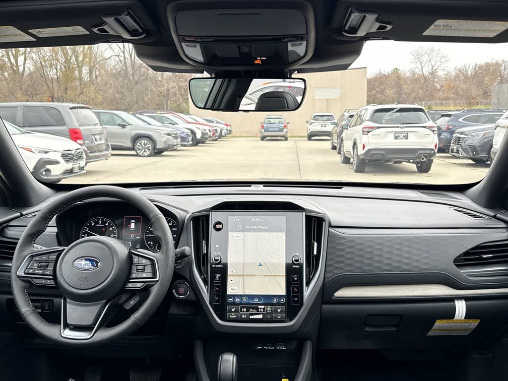 Forester Limited is nicely equipped with Harman/Kardon Speaker System and Navigation and Reverse Automatic Braking (Radio: Subaru 11.6 Multimedia Navigation System and Reverse Automatic Braking (RAB) System), Limited Package (Auto-Dimming Mirror with Compass and HomeLink, Cargo Tray, LED Upgrade, Rear Bumper Cover, and Splash Guards), 4-Wheel Disc Brakes, 6 Speakers, ABS brakes, Air Conditioning, All-Weather Floor Liners, Alloy wheels, AM/FM radio: SiriusXM with 360L, Anti-whiplash front head restraints, Auto High-beam Headlights, Automatic temperature control, Brake assist, Bumpers: body-color, Driver door bin, Driver vanity mirror, Dual front impact airbags, Dual front side impact airbags, Electronic Stability Control, Emergency communication system: MySubaru Companion (5-years free), Exterior Parking Camera Rear, Four wheel independent suspension, Front anti-roll bar, Front Bucket Seats, Front Center Armrest, Front dual zone A/C, Front fog lights, Front reading lights, Fully automatic headlights, Heated door mirrors, Heated Front Bucket Seats, Heated front seats, Heated steering wheel, Illuminated entry, Knee airbag, Leather steering wheel, Low tire pressure warning, Occupant sensing airbag, Outside temperature display, Overhead airbag, Overhead console, Panic alarm, Passenger door bin, Passenger vanity mirror, Perforated Leather-Trimmed Upholstery, Power door mirrors, Power driver seat, Power Liftgate, Power moonroof: Panoramic, Power passenger seat, Power steering, Power windows, Radio data system, Radio: Subaru 11.6 Multimedia Plus System, Rain sensing wipers, Rear anti-roll bar, Rear seat center armrest, Rear window defroster, Rear window wiper, Remote keyless entry, Security system, Speed control, Speed-sensing steering, Split folding rear seat, Spoiler, Steering wheel mounted audio controls, Tachometer, Telescoping steering wheel, Tilt steering wheel, Traction control, Trip computer, Turn signal indicator mirrors, Variably intermittent wipers, and Wheels: 18 x 7.0 J Dark Metallic Aluminum-Alloy.