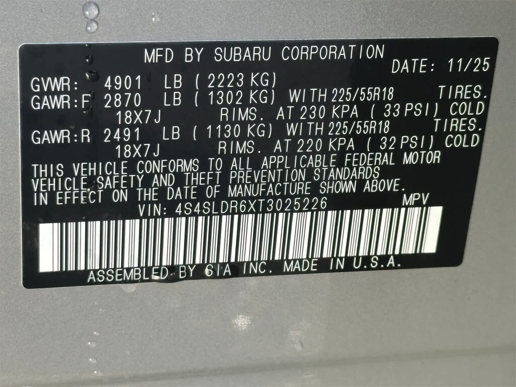 - Front tires: 225/55VR18.0