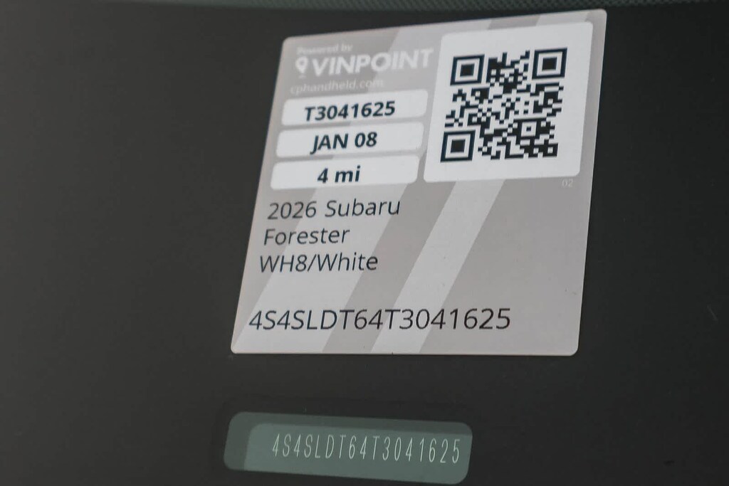 Crystal White Pearl 2026 Subaru Forester Touring AWD Lineartronic CVT 2.5L 4-Cylinder DOHC 16V DETAILED INTERIOR AND EXTERIOR FOR DELIVERY, Multi Point Safety and Mechanical Inspection Performed by Certified Technician.