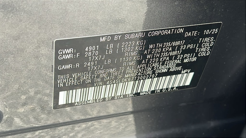 - 4S4SLDK67T3002707