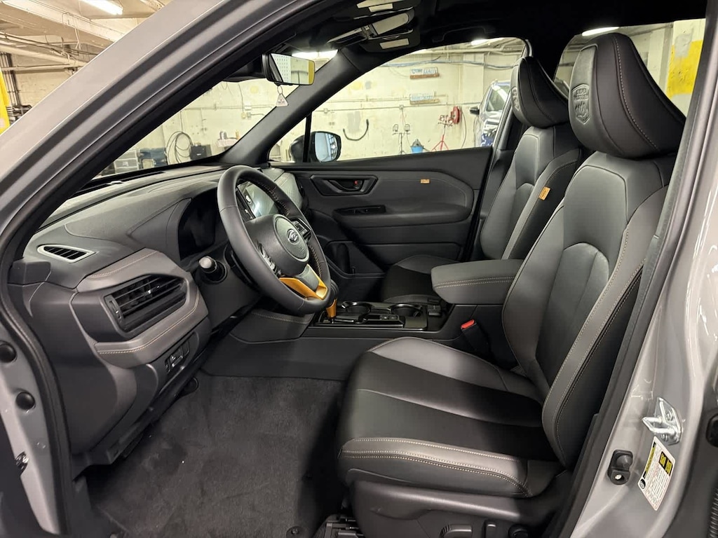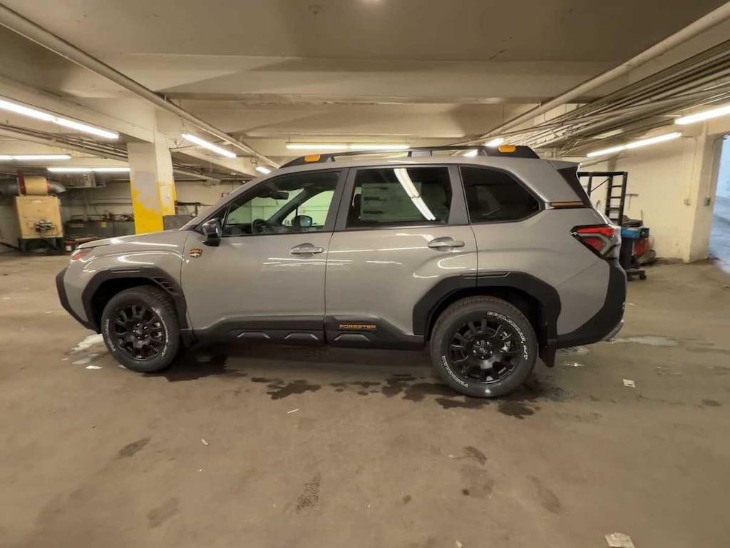 River Rock Pearl 2026 Subaru Forester Wilderness AWD Lineartronic CVT 2.5L 4-Cylinder DOHC 16V 4-Wheel Disc Brakes, 6 Speakers, ABS brakes, Air Conditioning, Alloy wheels, AM/FM radio: SiriusXM with 360L, Anti-whiplash front head restraints, Auto High-beam Headlights, Automatic temperature control, Brake assist, Bumpers: body-color, Driver door bin, Driver vanity mirror, Dual front impact airbags, Dual front side impact airbags, Electronic Stability Control, Emergency communication system: MySubaru Companion (5-years free), Exterior Parking Camera Rear, Four wheel independent suspension, Front anti-roll bar, Front Bucket Seats, Front Center Armrest, Front dual zone A/C, Front fog lights, Front reading lights, Fully automatic headlights, Heated door mirrors, Heated Front Bucket Seats, Heated front seats, Illuminated entry, Knee airbag, Low tire pressure warning, Occupant sensing airbag, Outside temperature display, Overhead airbag, Overhead console, Panic alarm, Passenger door bin, Passenger vanity mirror, Power door mirrors, Power driver seat, Power moonroof: Panoramic, Power steering, Power windows, Radio data system, Radio: Subaru 11.6 Multimedia Plus System, Rain sensing wipers, Rear anti-roll bar, Rear seat center armrest, Rear window defroster, Rear window wiper, Remote keyless entry, Security system, Speed control, Speed-sensing steering, Split folding rear seat, Spoiler, Steering wheel mounted audio controls, Tachometer, Telescoping steering wheel, Textured StarTex Upholstery, Tilt steering wheel, Traction control, Trip computer, Turn signal indicator mirrors, Variably intermittent wipers, Wheels: 17 x 7.0 J Matte Black Finish Aluminum-Alloy.