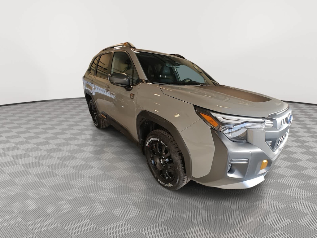 River Rock Pearl 2026 Subaru Forester Wilderness AWD Lineartronic CVT 2.5L 4-Cylinder DOHC 16V 4-Wheel Disc Brakes, 6 Speakers, ABS brakes, Air Conditioning, Alloy wheels, AM/FM radio: SiriusXM with 360L, Anti-whiplash front head restraints, Auto High-beam Headlights, Automatic temperature control, Brake assist, Bumpers: body-color, Driver door bin, Driver vanity mirror, Dual front impact airbags, Dual front side impact airbags, Electronic Stability Control, Emergency communication system: MySubaru Companion (5-years free), Exterior Parking Camera Rear, Four wheel independent suspension, Front anti-roll bar, Front Bucket Seats, Front Center Armrest, Front dual zone A/C, Front fog lights, Front reading lights, Fully automatic headlights, Heated door mirrors, Heated Front Bucket Seats, Heated front seats, Illuminated entry, Knee airbag, Low tire pressure warning, Occupant sensing airbag, Outside temperature display, Overhead airbag, Overhead console, Panic alarm, Passenger door bin, Passenger vanity mirror, Power door mirrors, Power driver seat, Power moonroof: Panoramic, Power steering, Power windows, Radio data system, Radio: Subaru 11.6 Multimedia Plus System, Rain sensing wipers, Rear anti-roll bar, Rear seat center armrest, Rear window defroster, Rear window wiper, Remote keyless entry, Security system, Speed control, Speed-sensing steering, Split folding rear seat, Spoiler, Steering wheel mounted audio controls, Tachometer, Telescoping steering wheel, Textured StarTex Upholstery, Tilt steering wheel, Traction control, Trip computer, Turn signal indicator mirrors, Variably intermittent wipers, Wheels: 17 x 7.0 J Matte Black Finish Aluminum-Alloy.