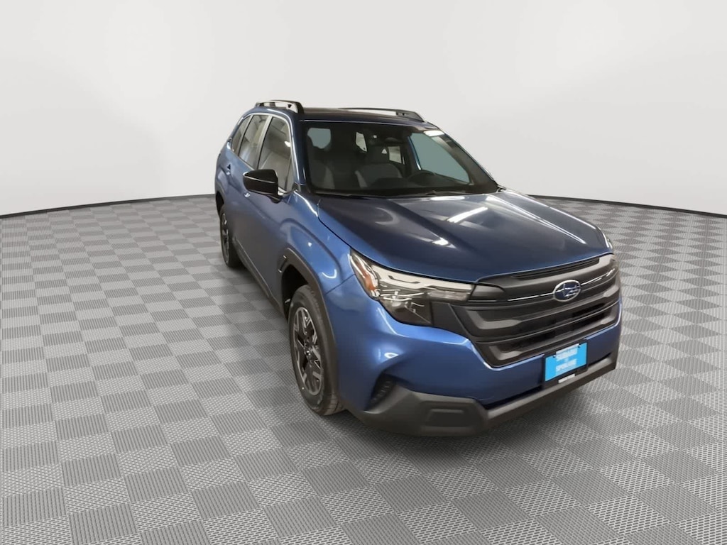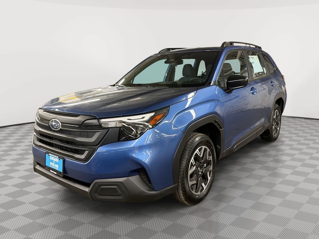 Daybreak Blue Pearl 2026 Subaru Forester AWD Lineartronic CVT 2.5L 4-Cylinder DOHC 16V 4 Speakers, 4-Wheel Disc Brakes, ABS brakes, Air Conditioning, Alloy wheels, AM/FM radio: SiriusXM, Anti-whiplash front head restraints, Auto High-beam Headlights, Automatic temperature control, Brake assist, Bumpers: body-color, Driver door bin, Driver vanity mirror, Dual front impact airbags, Dual front side impact airbags, Electronic Stability Control, Exterior Parking Camera Rear, Four wheel independent suspension, Front anti-roll bar, Front Bucket Seats, Front Center Armrest, Front dual zone A/C, Front reading lights, Fully automatic headlights, Hexagonal Patterned Cloth Upholstery, Illuminated entry, Knee airbag, Low tire pressure warning, Occupant sensing airbag, Outside temperature display, Overhead airbag, Overhead console, Panic alarm, Passenger door bin, Passenger vanity mirror, Power door mirrors, Power steering, Power windows, Radio data system, Radio: Subaru Dual 7.0 Multimedia System, Rear anti-roll bar, Rear window defroster, Rear window wiper, Remote keyless entry, Security system, Speed control, Speed-sensing steering, Split folding rear seat, Spoiler, Steering wheel mounted audio controls, Tachometer, Telescoping steering wheel, Tilt steering wheel, Traction control, Trip computer, Variably intermittent wipers, Wheels: 17 x 7.0 J Dark Metallic Aluminum-Alloy.