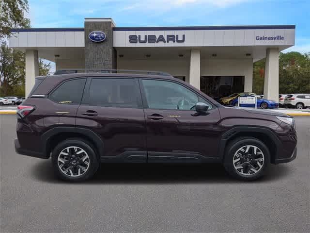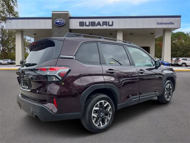 This 2026 Subaru Forester Premium in Dark Mahogany Pearl, features Power Rear Gate and Blind Spot Detection with Rear Cross Traffic Alert (Automatic Emergency Steering, Blind-Spot Detection (BSD)/RCTA System, Emergency Lane Keep Assist, and Power Rear Gate), 4-Wheel Disc Brakes, 6 Speakers, ABS brakes, Air Conditioning, Alloy wheels, AM/FM radio: SiriusXM with 360L, Anti-whiplash front head restraints, Auto High-beam Headlights, Auto-Dimming Mirror with Compass and HomeLink, Automatic temperature control, Brake assist, Bumpers: body-color, Cargo Net, Cargo Tray, Driver door bin, Driver vanity mirror, Dual front impact airbags, Dual front side impact airbags, Electronic Stability Control, Emergency communication system: MySubaru Companion (5-years free), Exterior Parking Camera Rear, Four wheel independent suspension, Front anti-roll bar, Front Bucket Seats, Front Center Armrest, Front dual zone A/C, Front fog lights, Front reading lights, Fully automatic headlights, Heated door mirrors, Heated Front Bucket Seats, Heated front seats, Illuminated entry, Knee airbag, Leather steering wheel, Low tire pressure warning, Occupant sensing airbag, Outside temperature display, Overhead airbag, Overhead console, Panic alarm, Passenger door bin, Passenger vanity mirror, Power door mirrors, Power driver seat, Power moonroof: Panoramic, Power steering, Power windows, Premium Textured Cloth Upholstery, Radio data system, Radio: Subaru 11.6 Multimedia Plus System, Rear anti-roll bar, Rear seat center armrest, Rear Seatback Protector, Rear window defroster, Rear window wiper, Remote keyless entry, Security system, Speed control, Speed-sensing steering, Split folding rear seat, Spoiler, Steering wheel mounted audio controls, Tachometer, Telescoping steering wheel, Tilt steering wheel, Traction control, Trip computer, Variably intermittent wipers, and Wheels: 17 x 7.0 J Dark Metallic Aluminum-Alloy: Premium AWD