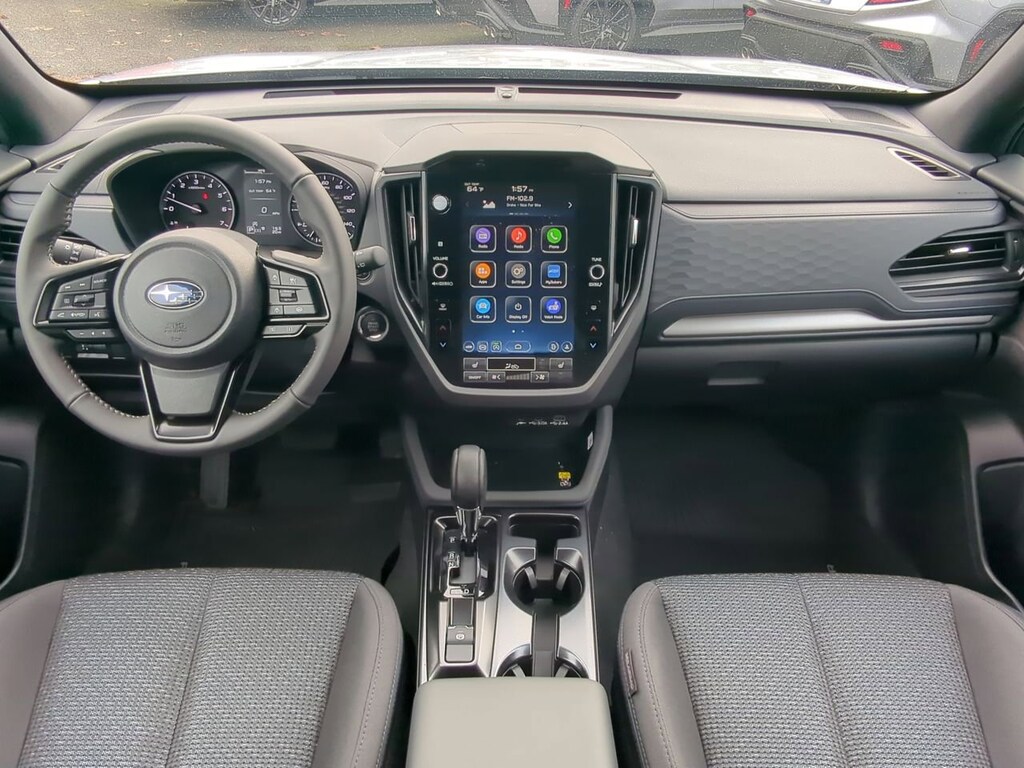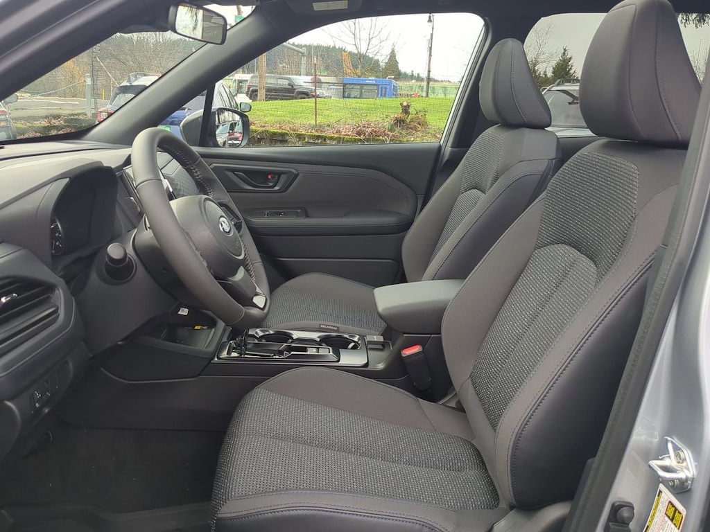 Ice Silver Metallic 2026 Subaru Forester Premium AWD Lineartronic CVT 2.5L 4-Cylinder DOHC 16V 4-Wheel Disc Brakes, 6 Speakers, ABS brakes, Air Conditioning, All-Weather Floor Liners, Alloy wheels, AM/FM radio: SiriusXM with 360L, Anti-whiplash front head restraints, Auto High-beam Headlights, Automatic temperature control, Brake assist, Bumpers: body-color, Driver door bin, Driver vanity mirror, Dual front impact airbags, Dual front side impact airbags, Electronic Stability Control, Emergency communication system: MySubaru Companion (5-years free), Exterior Parking Camera Rear, Four wheel independent suspension, Front anti-roll bar, Front Bucket Seats, Front Center Armrest, Front dual zone A/C, Front fog lights, Front reading lights, Fully automatic headlights, Heated door mirrors, Heated Front Bucket Seats, Heated front seats, Illuminated entry, Knee airbag, Leather steering wheel, Low tire pressure warning, Occupant sensing airbag, Outside temperature display, Overhead airbag, Overhead console, Panic alarm, Passenger door bin, Passenger vanity mirror, Power door mirrors, Power driver seat, Power moonroof: Panoramic, Power steering, Power windows, Premium Textured Cloth Upholstery, Radio data system, Radio: Subaru 11.6 Multimedia Plus System, Rear anti-roll bar, Rear Bumper Cover, Rear seat center armrest, Rear window defroster, Rear window wiper, Remote keyless entry, Security system, Speed control, Speed-sensing steering, Split folding rear seat, Spoiler, Standard Model, Steering wheel mounted audio controls, Tachometer, Telescoping steering wheel, Tilt steering wheel, Traction control, Trip computer, Variably intermittent wipers, Wheels: 17 x 7.0 J Dark Metallic Aluminum-Alloy.