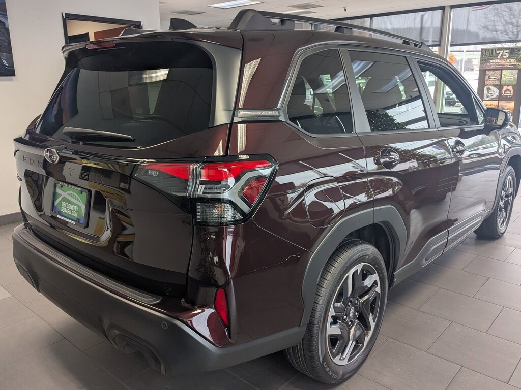Dark Mahogany Pearl 2026 Subaru Forester Limited AWD Lineartronic CVT 2.5L 4-Cylinder DOHC 16V 4-Wheel Disc Brakes, 6 Speakers, ABS brakes, Air Conditioning, All-Weather Floor Liners, Alloy wheels, AM/FM radio: SiriusXM with 360L, Anti-whiplash front head restraints, Auto High-beam Headlights, Auto-Dimming Exterior Mirror with Approach Light, Auto-Dimming Mirror with Compass and HomeLink, Automatic temperature control, Brake assist, Bumpers: body-color, Cargo Tray, Driver door bin, Driver vanity mirror, Dual front impact airbags, Dual front side impact airbags, Electronic Stability Control, Emergency communication system: MySubaru Companion (5-years free), Exterior Parking Camera Rear, Four wheel independent suspension, Front anti-roll bar, Front Bucket Seats, Front Center Armrest, Front dual zone A/C, Front fog lights, Front reading lights, Fully automatic headlights, Harman/Kardon Speaker System and Navigation and Reverse Automatic Braking, Heated door mirrors, Heated Front Bucket Seats, Heated front seats, Heated steering wheel, Illuminated entry, Knee airbag, Leather steering wheel, Low tire pressure warning, Occupant sensing airbag, Outside temperature display, Overhead airbag, Overhead console, Panic alarm, Passenger door bin, Passenger vanity mirror, Perforated Leather-Trimmed Upholstery, Power door mirrors, Power driver seat, Power Liftgate, Power moonroof: Panoramic, Power passenger seat, Power steering, Power windows, Radio data system, Radio: Subaru 11.6 Multimedia Navigation System, Radio: Subaru 11.6 Multimedia Plus System, Rain sensing wipers, Rear anti-roll bar, Rear Bumper Cover, Rear seat center armrest, Rear window defroster, Rear window wiper, Remote keyless entry, Reverse Automatic Braking (RAB) System, Security system, Speed control, Speed-sensing steering, Split folding rear seat, Spoiler, Steering wheel mounted audio controls, Tachometer, Telescoping steering wheel, Tilt steering wheel, Traction control, Trip computer, Turn signal indicator mirrors, Variably intermittent wipers, Wheels: 18 x 7.0 J Dark Metallic Aluminum-Alloy.