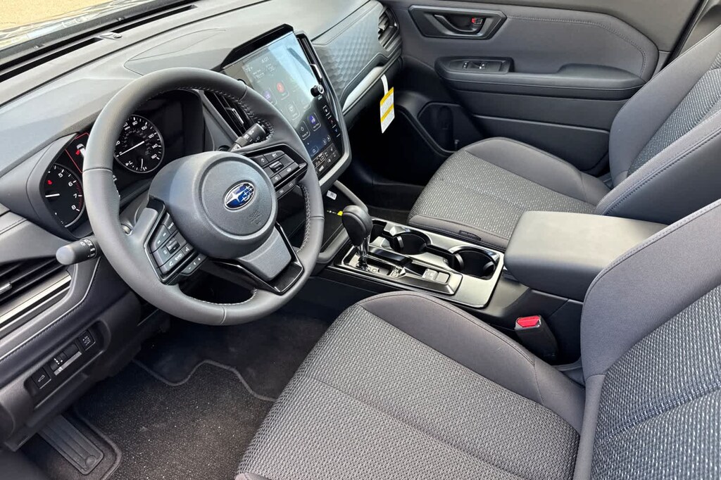 This 2026 Subaru Forester Premium is finished in the Crystal Black Silica exterior paint and Black Cloth interior.