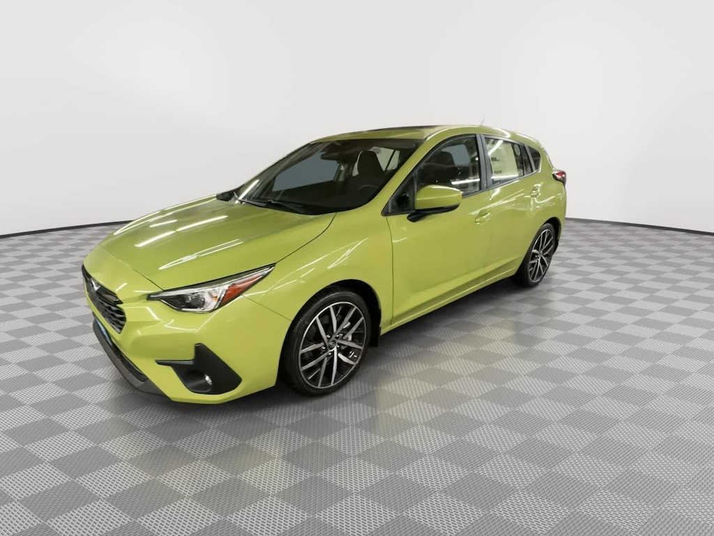 Citron Yellow Pearl 2026 Subaru Impreza Sport AWD CVT Lineartronic 2.0L DOHC 4-Wheel Disc Brakes, 6 Speakers, ABS brakes, Air Conditioning, Alloy wheels, AM/FM radio: SiriusXM, Anti-whiplash front head restraints, Auto High-beam Headlights, Automatic temperature control, Brake assist, Bumpers: body-color, Driver door bin, Driver vanity mirror, Dual front impact airbags, Dual front side impact airbags, Electronic Stability Control, Emergency communication system: MySubaru Companion (5-years free), Exterior Parking Camera Rear, Four wheel independent suspension, Front anti-roll bar, Front Bucket Seats, Front Center Armrest, Front dual zone A/C, Front fog lights, Front reading lights, Fully automatic headlights, Illuminated entry, Knee airbag, Low tire pressure warning, Occupant sensing airbag, Outside temperature display, Overhead airbag, Overhead console, Panic alarm, Passenger door bin, Passenger vanity mirror, Power door mirrors, Power steering, Power windows, Radio data system, Radio: Subaru 11.6 Multimedia Plus System, Rear anti-roll bar, Rear seat center armrest, Rear side impact airbag, Rear window defroster, Rear window wiper, Remote keyless entry, Security system, Speed control, Speed-sensing steering, Split folding rear seat, Spoiler, Sport Cloth Upholstery, Steering wheel mounted audio controls, Tachometer, Telescoping steering wheel, Tilt steering wheel, Traction control, Trip computer, Turn signal indicator mirrors, Variably intermittent wipers, Wheels: 18 x 7.5 Jdark Gray Aluminum-Alloy.