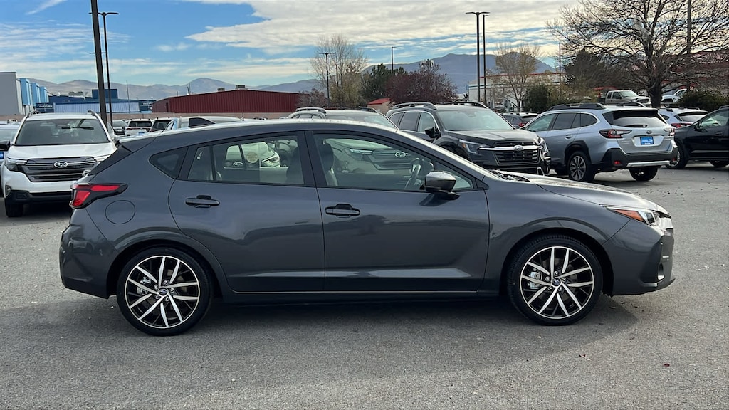 BSD/RCTA & ALL WEATHER PKG & POWER MOONROOF system off switch, BSD/RCTA detection indicator exterior power mirrors, rear radar detection sensors and lane change assist, Blind Spot Detection (BSD), Power Moonroof, tilt up and internal retracting w/auto-open/close, laminated, UV and dark tint glass, Rear Cross-Traffic Alert (RCTA) System, off and system malfunction warning indicator and audible vehicle detection warning, Automatic Emergency Steering, All Weather Package, Heated Exterior Power Mirrors, Dual-Mode Heated Front Seats, Windshield Wiper De-Icer, Sun Visors w/Vanity Mirror & Lights, Emergency Lane Keep Assist, AUTO-DIMMING MIRROR W/COMPASS & HOMELINK Bulk Kit Bag. Subaru Sport with Magnetite Gray Metallic exterior and Black interior features a 4 Cylinder Engine with 152 HP at 6000 RPM*.
