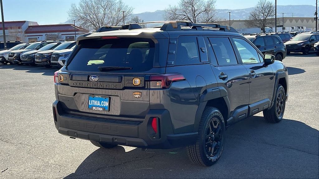 MOONROOF & NAVIGATION & SURROUND VIEW MONITOR Power Moonroof, tilt up and internal retracting w/auto-open/close and laminated, UV, dark tinted glass, Surround View Monitor, Radio: Subaru 12.1 Multimedia System w/Navigation, AM/FM stereo, HD Radio, valet mode, multi-touch gesture high resolution display screen, voice activated controls, voice activated navigation, Bluetooth® audio streaming and hands-free phone connectivity w/SMS text messaging (refer to subaru.com for cell phone compatibility), TomTom navigation software w/what3words, smartphone integration for Android Auto® and Apple CarPlay® w/full screen view and wireless connection, USB (CCU only) and Over The Air (OTA) audio system update, audio system, hands-free phone and voice command talk steering wheel control switches, 576 watt, WILDERNESS PACKAGE Auto-Dimming Mirror w/Compass & HomeLink (DISC) and H501SFN001, bulk kit bag, Auto-Dimming Exterior Mirror w/Approach Light, Rear Bumper Cover, Rear Seat Back Protector, AERO CROSSBAR SET. Subaru Wilderness with Magnetite Gray Metallic exterior and Black interior features a 4 Cylinder Engine with 260 HP at 5600 RPM*.