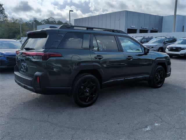 This 2026 Subaru Outback Limited in Deep Emerald Green Pearl, features Premium/Limited Package 2 (All-Weather Floor Liners, Auto-Dimming Mirror with Compass and HomeLink, Rear Bumper Cover, and Splash Guards), Standard Model, 12 Speakers, 4-Wheel Disc Brakes, ABS brakes, Air Conditioning, Alloy wheels, AM/FM radio: SiriusXM with 360L, Anti-whiplash front head restraints, Auto High-beam Headlights, Automatic temperature control, Blind Spot Warning, Brake assist, Bumpers: body-color, Compass, Driver door bin, Driver vanity mirror, Dual front impact airbags, Dual front side impact airbags, Electronic Stability Control, Emergency communication system: MySubaru Companion (5-years free), Exterior Parking Camera Rear, Four wheel independent suspension, Front anti-roll bar, Front Bucket Seats, Front Center Armrest w/Storage, Front dual zone A/C, Front fog lights, Front reading lights, Fully automatic headlights, harman/kardonî Speakers, Heated door mirrors, Heated Front Bucket Seats, Heated front seats, Heated rear seats, Heated steering wheel, HVAC memory, Illuminated entry, Knee airbag, Leather steering wheel, Low tire pressure warning, Memory seat, Navigation system: MySubaru Navigator (1-year trial), Occupant sensing airbag, Outside temperature display, Overhead airbag, Overhead console, Panic alarm, Passenger door bin, Passenger vanity mirror, Perforated Leather-Trimmed Upholstery, Power door mirrors, Power driver seat, Power Liftgate, Power moonroof, Power passenger seat, Power steering, Power windows, Radio: Subaru 12.1 Multimedia System with Navigation, Rain sensing wipers, Rear anti-roll bar, Rear seat center armrest, Rear window defroster, Rear window wiper, Remote keyless entry, Security system, Speed control, Speed-sensing steering, Split folding rear seat, Spoiler, Steering wheel mounted audio controls, Tachometer, Telescoping steering wheel, Tilt steering wheel, Traction control, Trip computer, Turn signal indicator mirrors, Variably intermittent wipers, and Wheels: 18 x 7J Matte Black Finish Aluminum-Alloy: Limited AWD