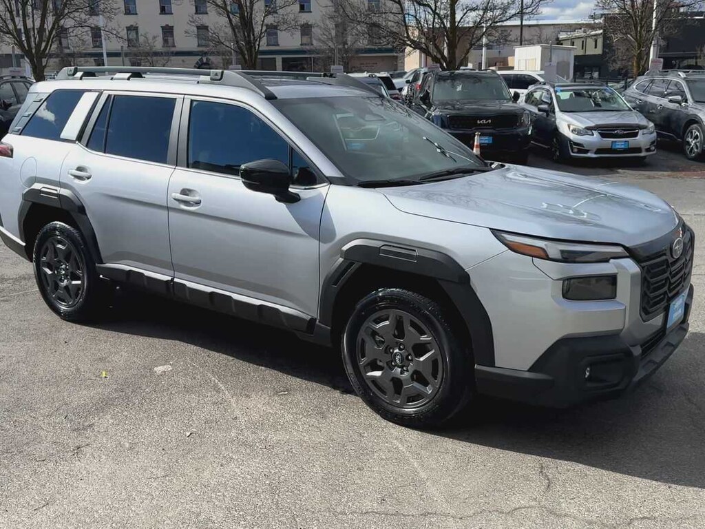 Ice Silver Metallic 2026 Subaru Outback Premium AWD CVT Lineartronic 2.5L 4-Cylinder DOHC 16V 4-Wheel Disc Brakes, 6 Speakers, ABS brakes, Air Conditioning, Alloy wheels, AM/FM radio: SiriusXM with 360L, Anti-whiplash front head restraints, Auto High-beam Headlights, Automatic temperature control, Blind Spot Warning, Brake assist, Bumpers: body-color, Driver door bin, Driver vanity mirror, Dual front impact airbags, Dual front side impact airbags, Electronic Stability Control, Emergency communication system: MySubaru Companion (5-years free), Exterior Parking Camera Rear, Four wheel independent suspension, Front anti-roll bar, Front Bucket Seats, Front Center Armrest w/Storage, Front dual zone A/C, Front fog lights, Front reading lights, Fully automatic headlights, Heated door mirrors, Heated Front Bucket Seats, Heated front seats, HVAC memory, Illuminated entry, Knee airbag, Leather steering wheel, Low tire pressure warning, Occupant sensing airbag, Outside temperature display, Overhead airbag, Overhead console, Panic alarm, Passenger door bin, Passenger vanity mirror, Power door mirrors, Power driver seat, Power Liftgate, Power steering, Power windows, Radio: Subaru 12.1 Multimedia System, Rear anti-roll bar, Rear seat center armrest, Rear window defroster, Rear window wiper, Remote keyless entry, Security system, Speed control, Speed-sensing steering, Split folding rear seat, Spoiler, StarTex Upholstery, Steering wheel mounted audio controls, Tachometer, Telescoping steering wheel, Tilt steering wheel, Traction control, Trip computer, Turn signal indicator mirrors, Variably intermittent wipers, Wheels: 18 x 7J Aluminum-Alloy.