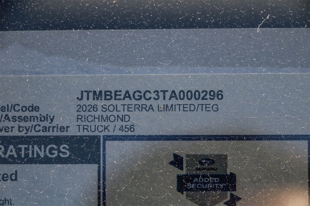 This 2026 Subaru Solterra Limited is finished in the Midnight Tide Mica exterior paint and Gray interior.