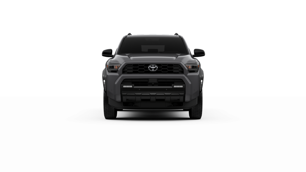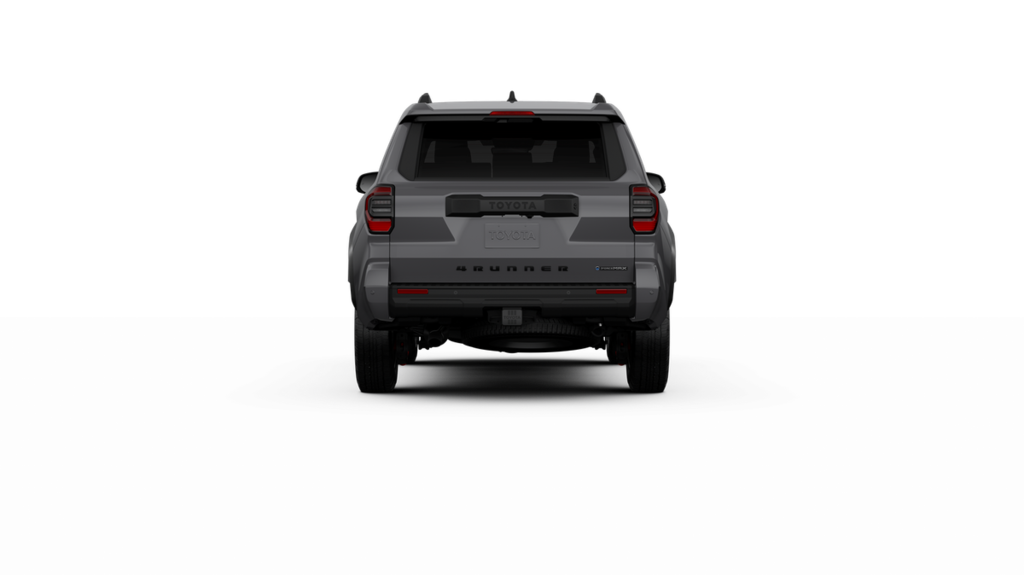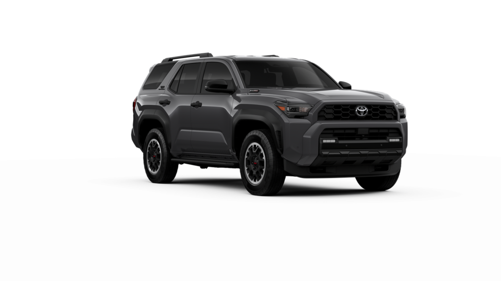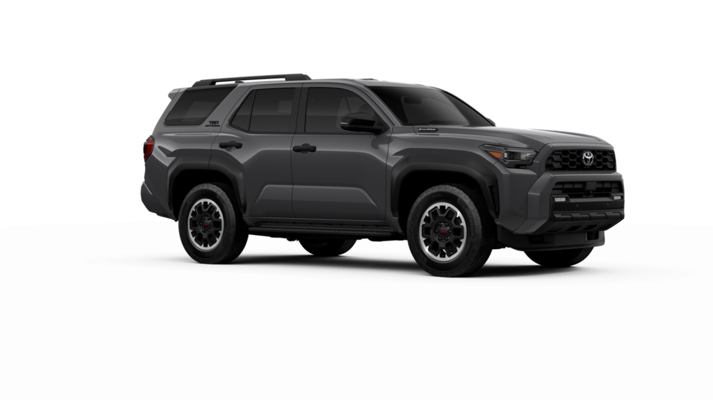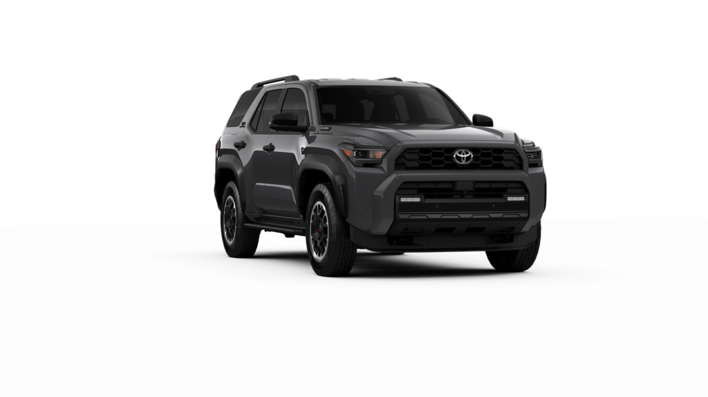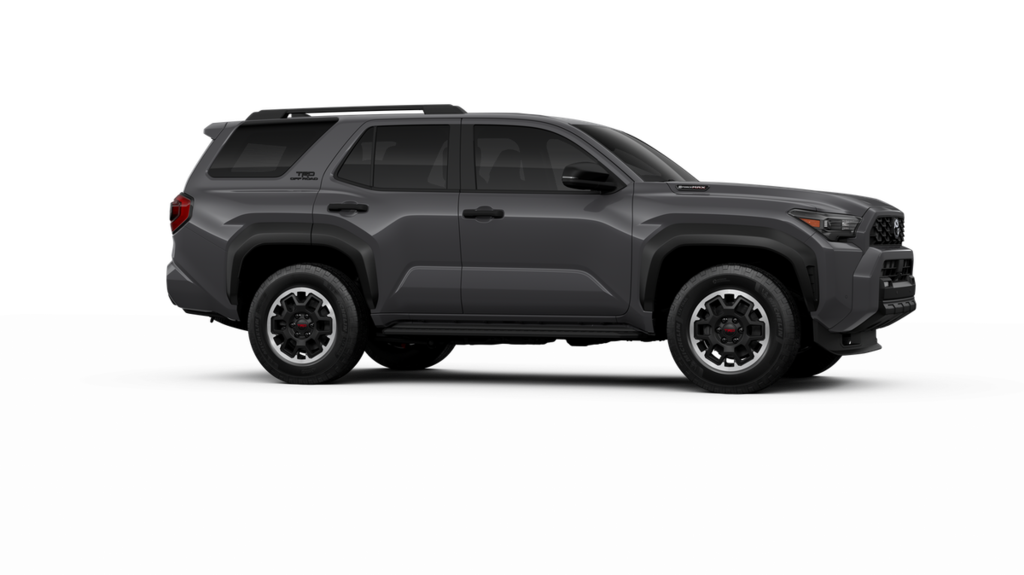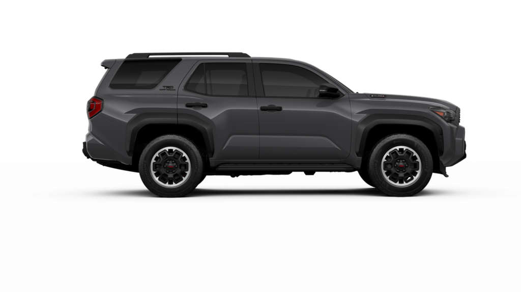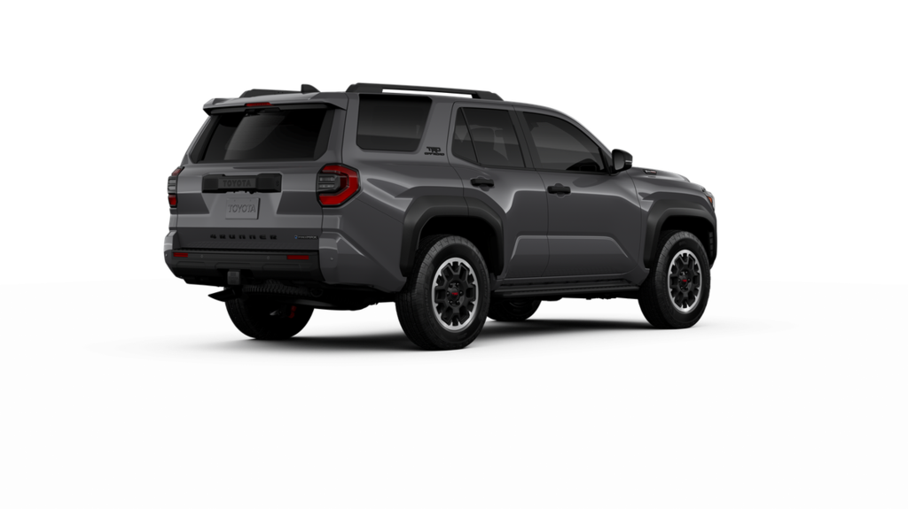 - Black honeycomb-style grille, mirror caps, door handles, and overfenders color-keyed rear spoiler black 'TRD OFF ROAD' and '4RUNNER' badges