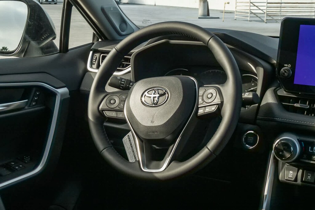 - Leather-trimmed tilt/telescopic 3-spoke steering wheel with silver accent and controls for audio, multi-information display (mid, Bluetooth. ®hands-free phone, voice-command, dynamic radar cruise control (drcc),lane departure alert (lda),and lane trace assist (lta).A compatible. Bluetooth. ®-enabled phone must first be paired. Phone performance depends on software, coverage and carrier. The. Bluetooth. ® word mark and logos are registered trademarks of bluetooth sig, inc. Use of such marks by toyota is under license.,Dynamic radar cruise control is not a substitute for safe and attentive driving. See. Owner’s. Manual. For limitations.,Lane departure alert with steering assist is designed to read visible lane markers under certain conditions. It provides a visual/audible alert and slight steering force when lane departure is detected. It is not a collision-avoidance system or a substitute for safe and attentive driving. Effectiveness depends on many factors including road, weather and vehicle conditions. See. Owner’s. Manual. For limitations.,The lane tracing assist (lta) lane centering function is designed to read visible lane markers and detect other vehicles under certain conditions. It is only operational when drcc is engaged. See. Owner's. Manual. For limitations.