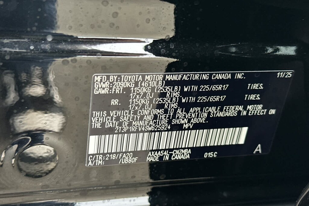 Black 2025 Toyota RAV4 XLE AWD 8-Speed Automatic 2.5L 4-Cylinder DOHC Dual VVT-i AWD, Fa20/Black Cloth.