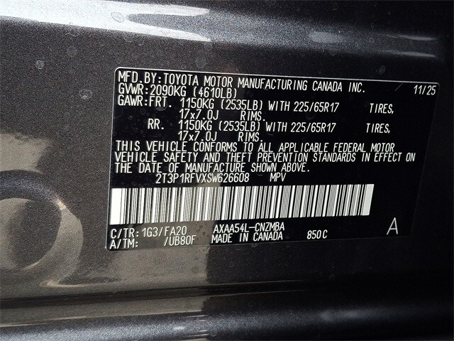 01g3/Gray 2025 Toyota RAV4 XLE AWD 8-Speed Automatic 2.5L 4-Cylinder DOHC Dual VVT-i AWD, Fa20/Black Cloth.