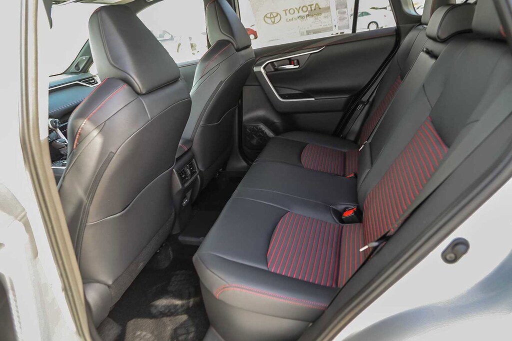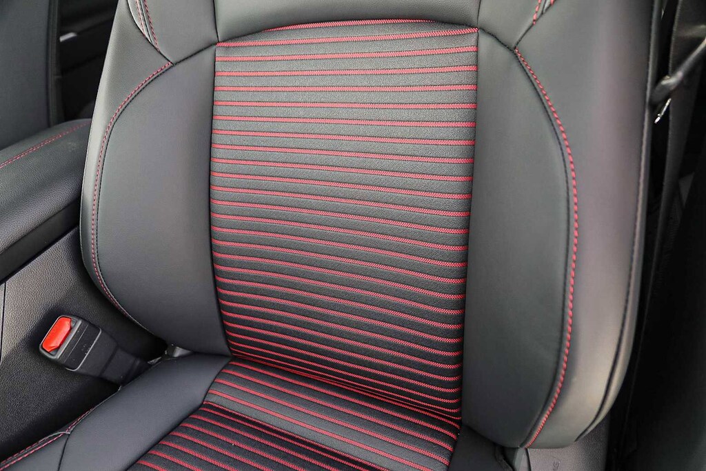 - Softex®-trimmed seats with sporty red stitching and fabric seat inserts; heated front seats; 8-way power-adjustable front driver's seat with lumbar support and seatback pocket; 4-way adjustable front passenger seat with seatback pocket.